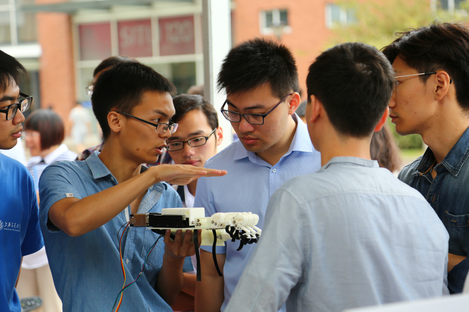 本次项目式实践课程竞赛,恰逢全国“大众创业、万众创新”双创活动周,课程竞赛中的部分获奖作品智能图书整理小车、手指康复机器人、智能导盲机器人、自跟随智能小车,应邀在2017年全国大众创业万众创新活动周“上海交大-闵行”专场活动中展示,买球官网专业学位研究生学子的创新实践设计理念及作品吸引了社会各界的广泛关注。