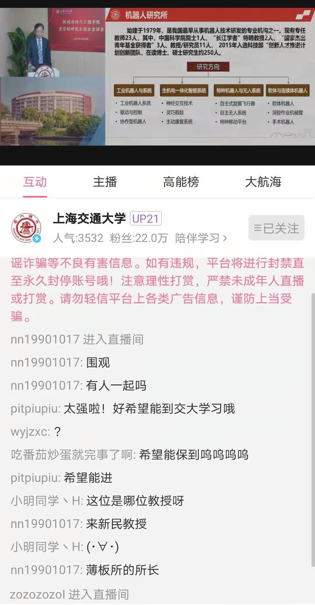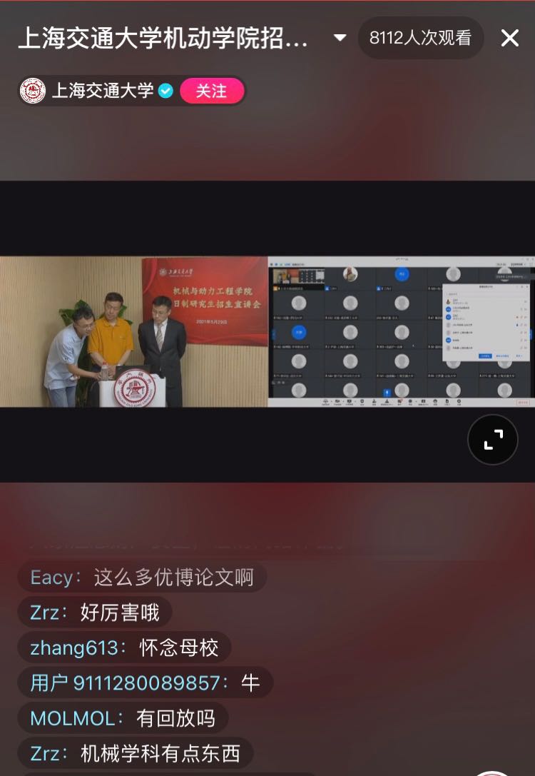 本次研究生招生宣讲会通过腾讯会议、买球官方网站官方B站及抖音直播平台进行了同步直播,数据显示,腾讯会议室300余名学生现场参会,交大官方B站及抖音平台累计观看人次突破3万,获得了高度关注。