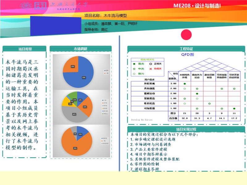 现在市场上售卖许许多多的工艺品。随着人们生活水平的提高,人们对于艺术品,工艺品的需求也提高。我们看到市场上具有可玩性以及趣味性的工艺品寥寥无几。我们觉得这是可拓展的市场。我们选择了木牛流马模型作为我们的课程设计。灵感取自三国时期诸葛亮发明的木牛流马。它能够背负东西,也能走动。做成工艺品的话,具有可玩性以及趣味性。