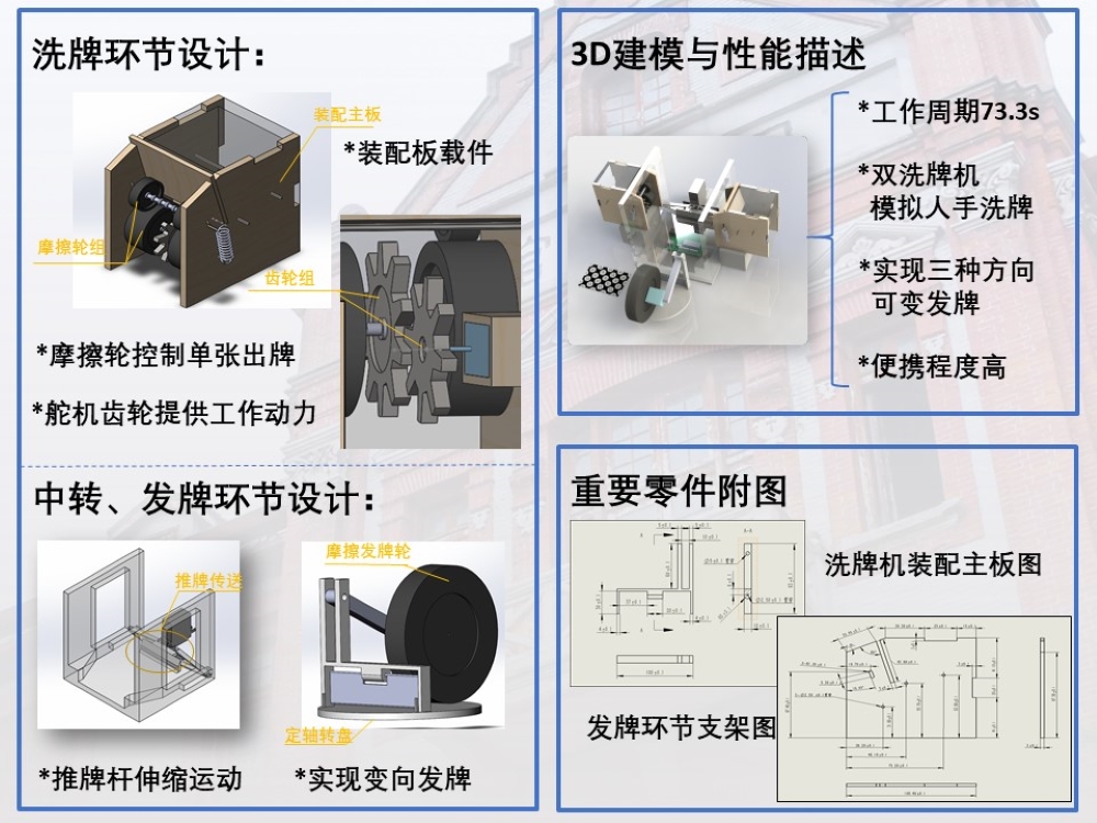 5. 洗牌机环节机器零件的装配,并拍摄实际使用的效果视频。