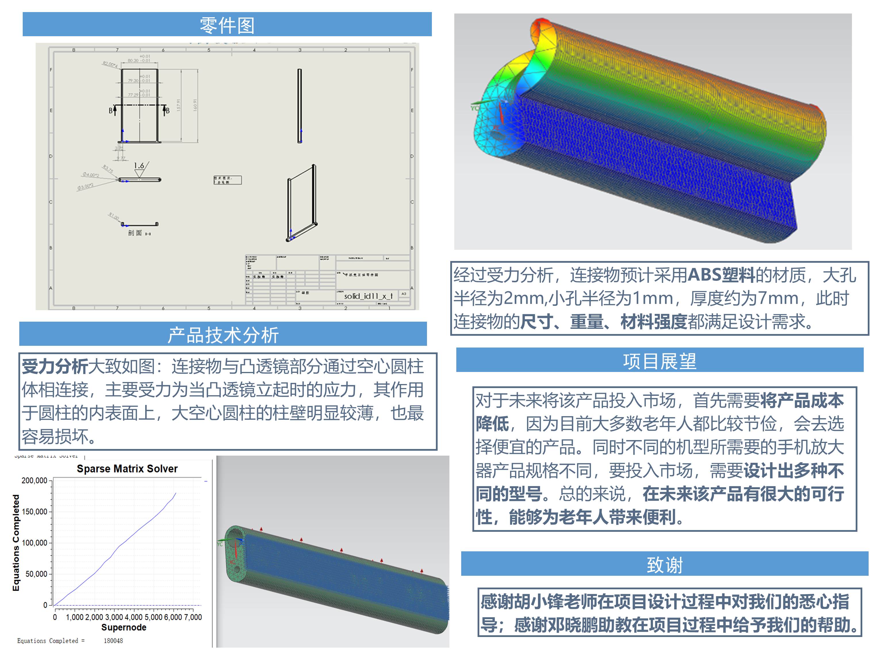 成功设计了一款自带放大镜的手机壳,基本满足提出的设计要求,多次对旋转滑动机械结构进行优化,在不需要使用的时候可以将凸透镜折叠,使得装置结构小巧紧凑。