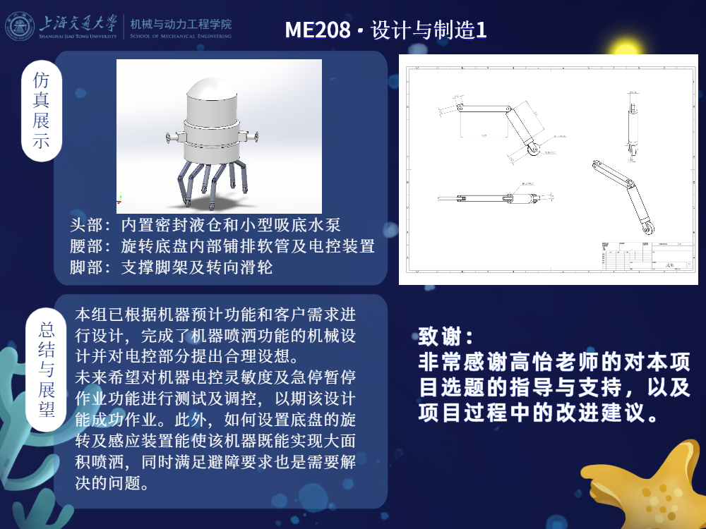 就预览效果而言,小组设计的仿生乌贼喷洒机器满足了以下需求: