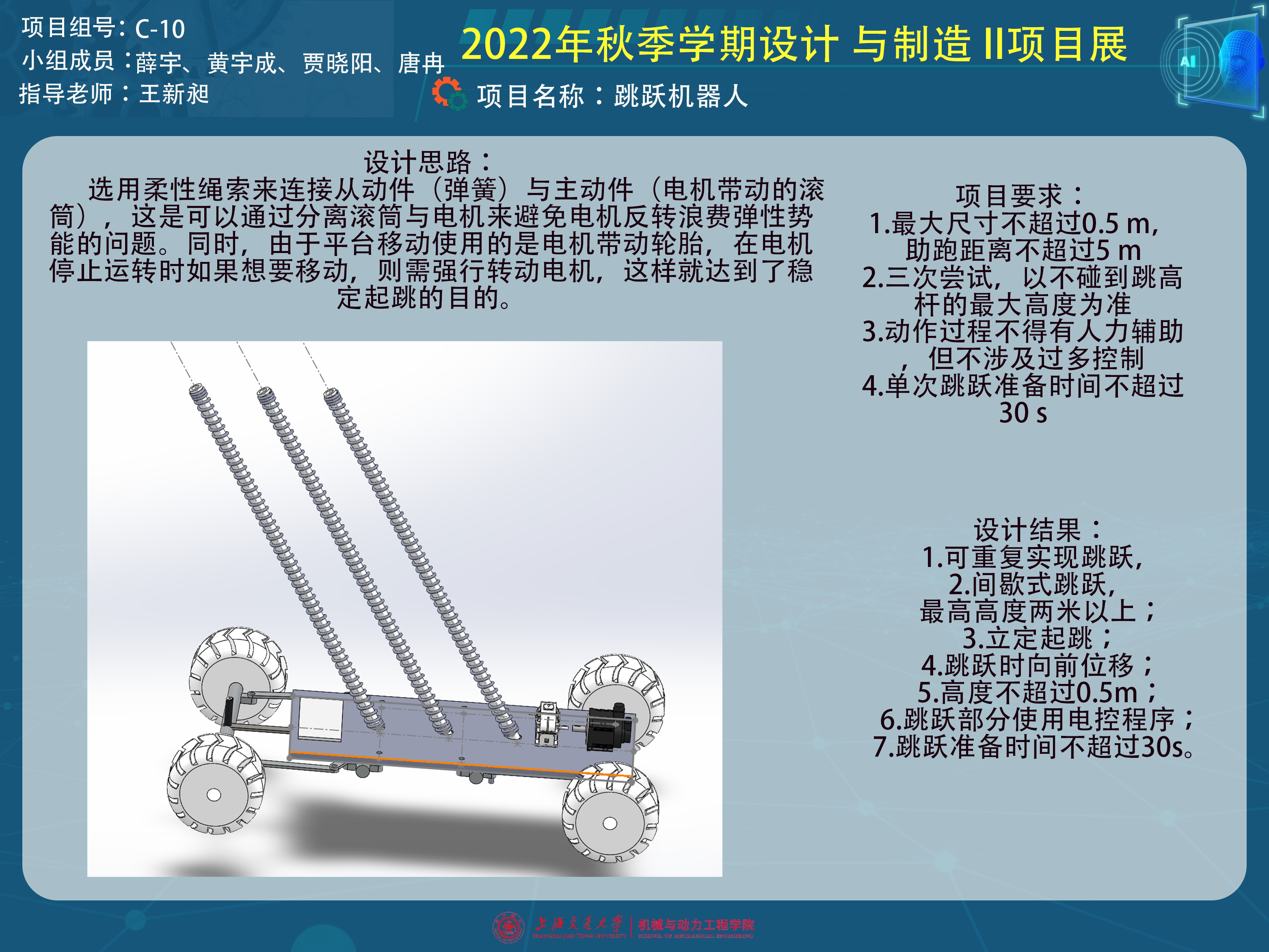 根据上述项目挑战赛的要求,本小组将最终跳跃机器人的设计目标细化为: