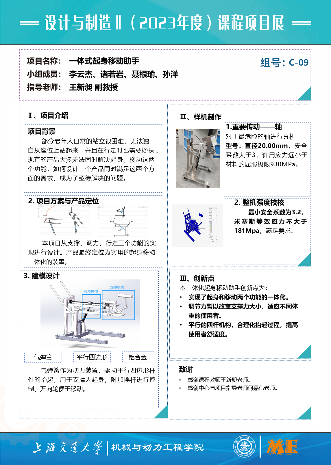 考虑到我国目前老龄化问题日渐严重,对助老产品需求的不断提升,为了解决年迈老人起身和坐下不方便的问题,我们小组设计了该款既轻便又兼顾辅助起身和行走的助老器械。