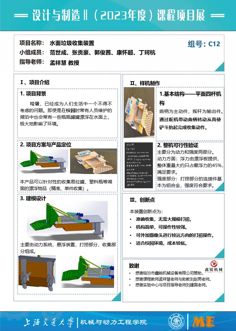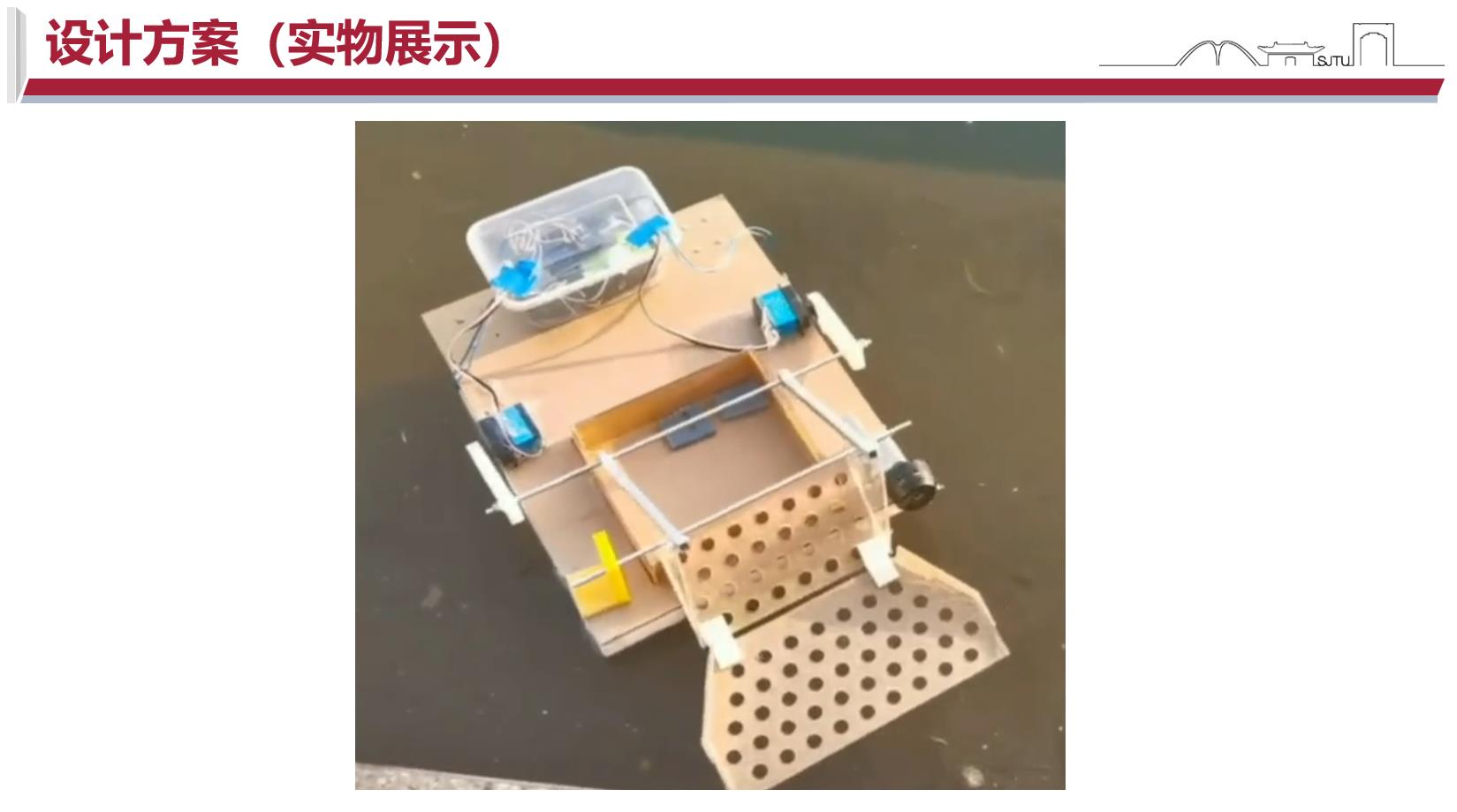 本小组实地调查了当前校园中的垃圾分布的情况,致力于寻求一种可以自动操控的遥控的水面垃圾收集装置,目的是减少在收集校园垃圾时造成的资源的浪费,同时避免了人工清理垃圾可能会出现的安全问题。