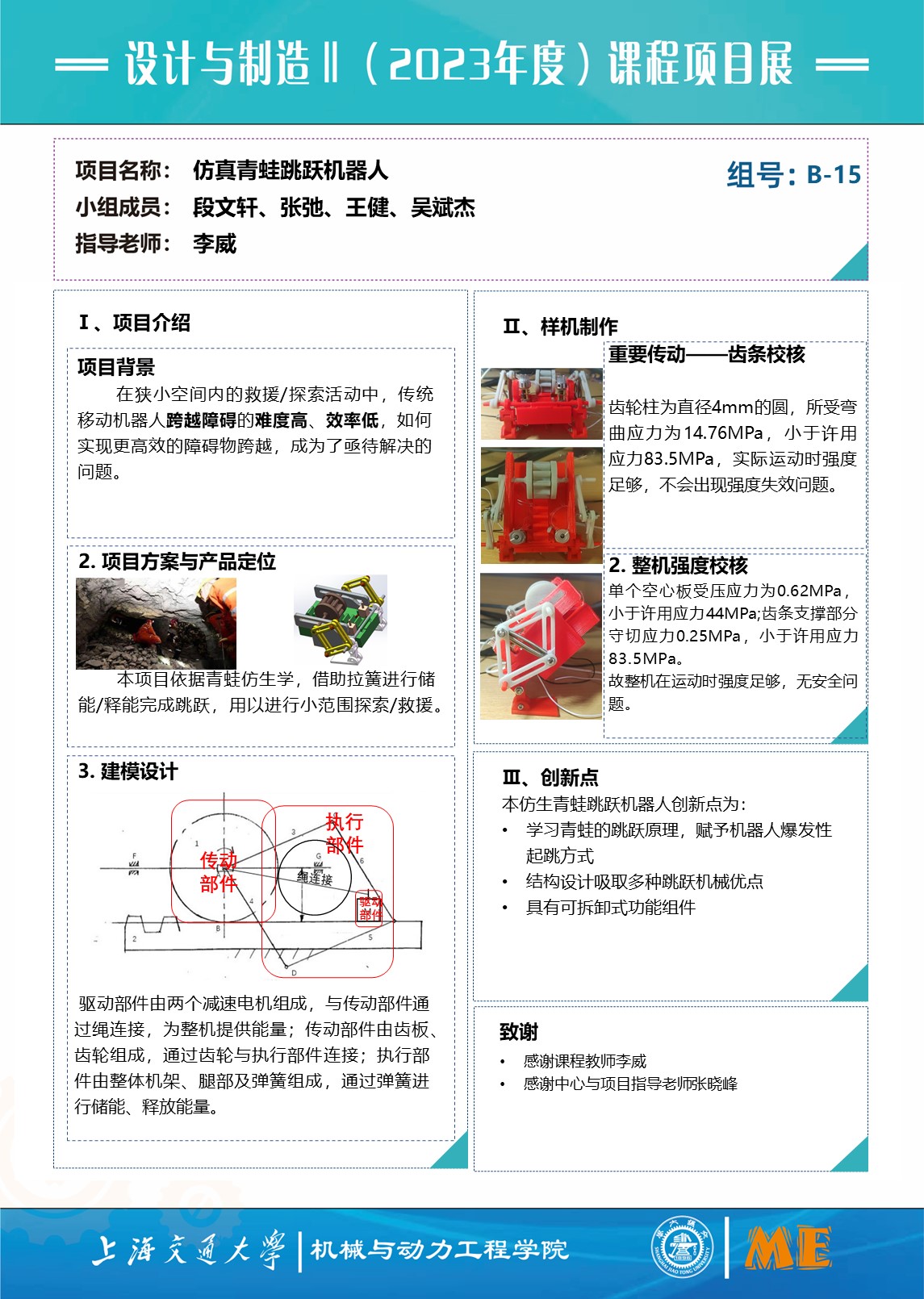 小组成功设计并制造了跳跃机器人,实现了跳跃功能。