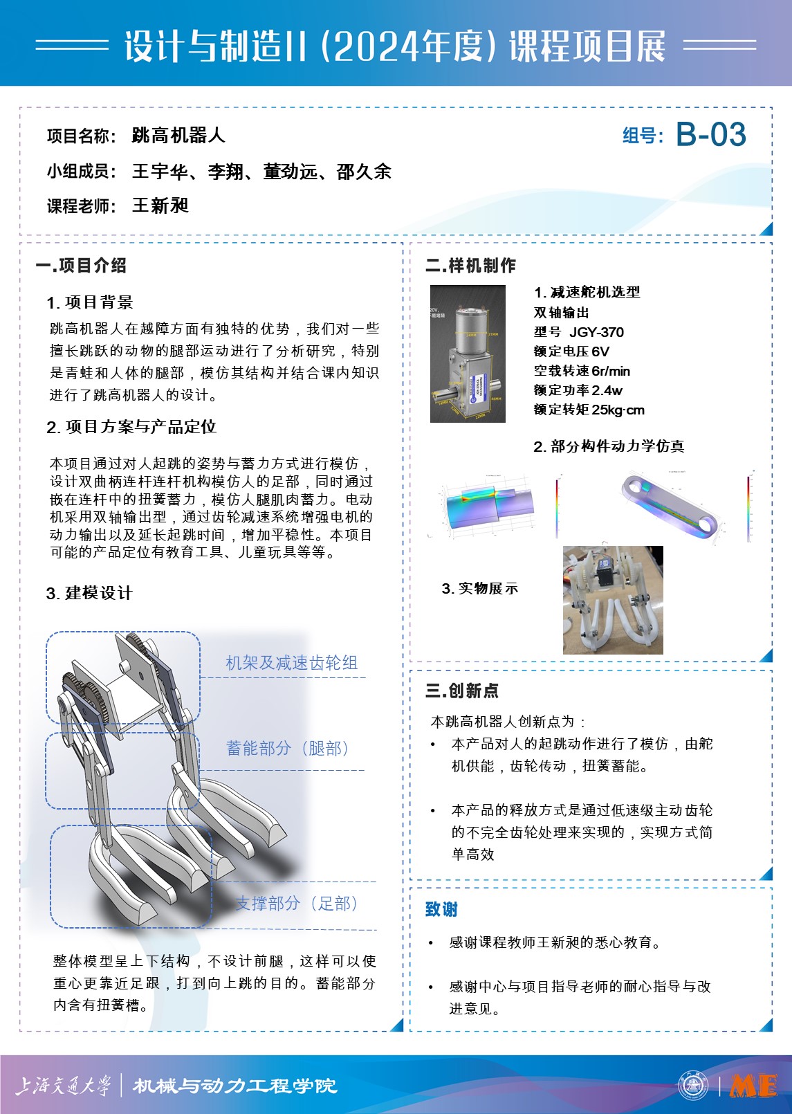 设计了一款模仿青蛙和人类腿部结构的跳高机器人,并完成了样机的制作