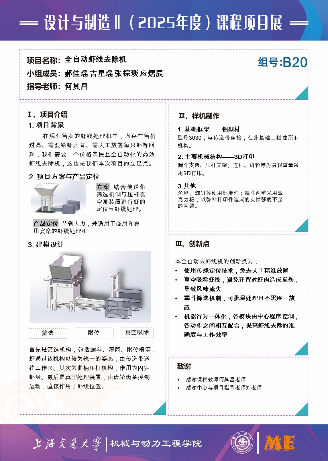 研发一套基于超声波测距与真空抽吸技术的低成本自动化设备,实现非开背式虾线去除。在保持虾体完整的前提下,显著提升处理效率,替代传统人工操作,为家庭厨房及中小型水产加工场景提供高效便捷的解决方案。