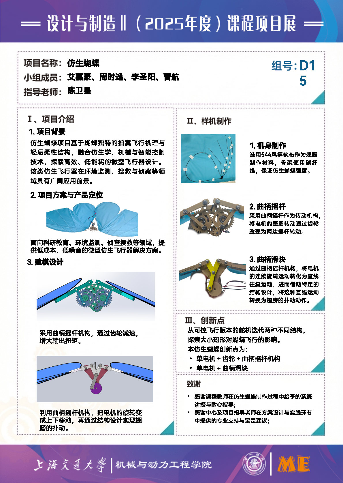 仿生蝴蝶项目基于蝴蝶独特的拍翼飞行机理与轻质柔性结构,融合仿生学、机械与智能控制技术,探索高效、低能耗的微型飞行器设计。该类仿生飞行器在环境监测、搜救与侦察等领域具有广阔应用前景。本产品面向科研教育、环境监测、侦查搜救等领域,提供低成本、低噪音的微型仿生飞行器解决方案。