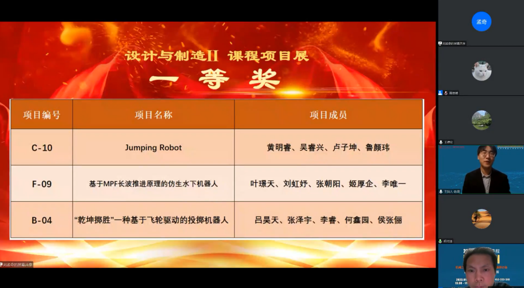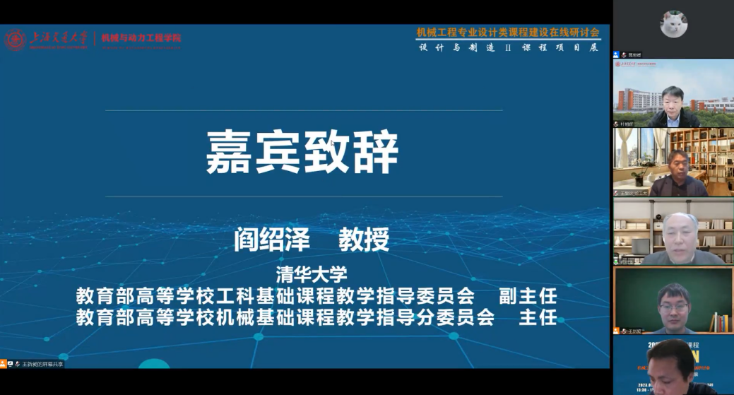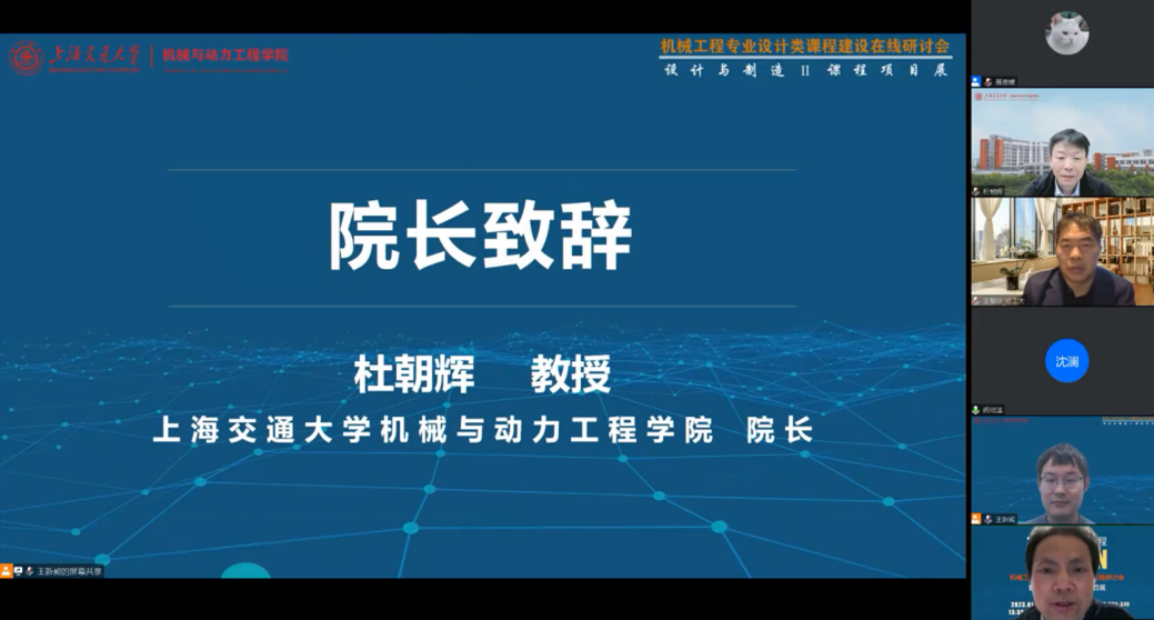 1月14日,由教育部首批虚拟教研室建设试点“机械工程专业虚拟教研室”、买球官方网站买球官方网站主办,机械原理课程群虚拟教研室、机械设计课程群虚拟教研室协办的机械工程专业设计类课程建设在线研讨会暨“设计与制造Ⅱ”课程项目展于线上成功举办。教育部高等学校机械基础课程教学指导分委员会主任、清华大学阎绍泽教授,教育部机械原理课程群虚拟教研室主任、大连理工大学王德伦教授,教育部机械设计课程群虚拟教研室常务副主任、哈尔滨工业大学王黎钦教授,副主任张锋教授,上海交大买球官方网站院长杜朝辉、党委副书记胡永祥,教育部机械原理课程群虚拟教研室副主任、“设计与制造Ⅱ”课程负责人郭为忠教授,虚拟教研室高校成员单位教师代表及参展学生等300余人参加了活动。