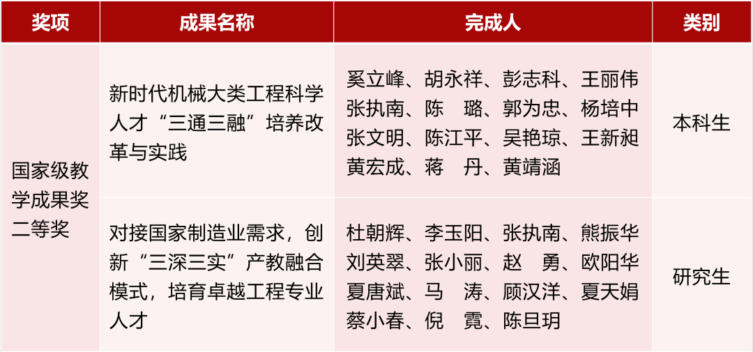 成果名称:新时代机械大类工程科学人才“三通三融”培养改革与实践