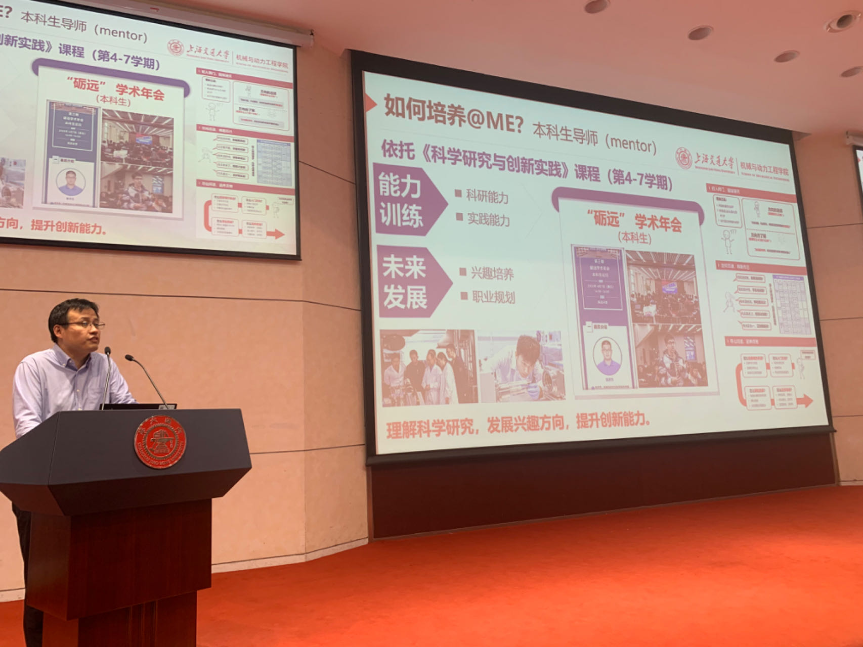 易培云教授以“机械与动力交叉•顶天与立地交融”为题,分享了在学院学习、科研、教书育人的经历,启迪学子们艰苦奋斗、砥砺前行、勇于创新,并结合创业经历,介绍了学院智能制造、能源、机器人等前沿研究方向,激励大家成长为复合型人才。