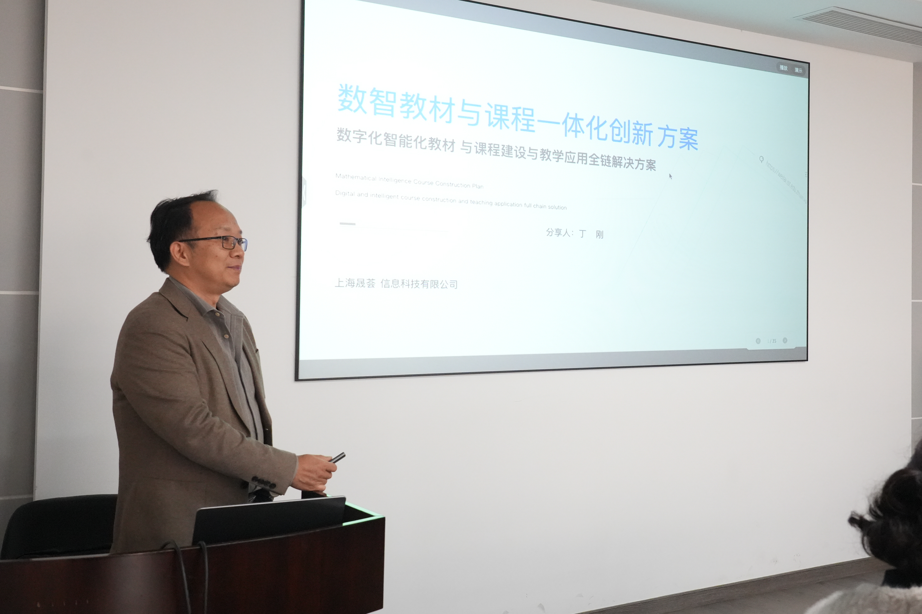 丁刚作“数智课程与教材一体化方案创新”主题汇报,分别从制作阶段的编创工具与应用阶段的使用模式两个方面介绍了数智教材的建设方案。