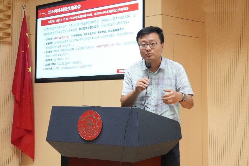 校招生办副主任郑成做近期本科招生工作汇报,介绍了2024年本科招生培训会、招生咨询会暨校园开放日以及学森计划暑期营的工作安排等,并针对招生组成员结构提出了建议。