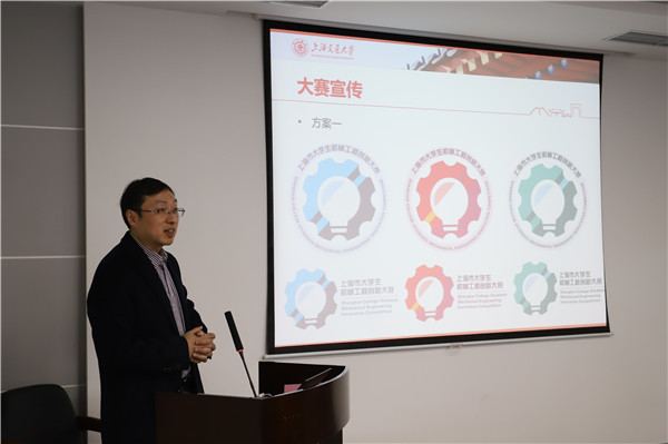 张文明对第九届上海市大学生机械工程创新大赛做筹备工作的介绍,与各高校与会代表讨论第九届大赛举办的相关细则。同时,为大赛设计了相关宣传品,进一步扩大赛事的影响力。