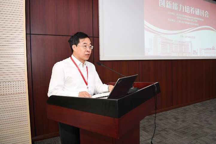 奚立峰致欢迎辞,指出作为教育部教育体制改革首批试点学院,上海交大机械动力学院以培养具有社会责任感和国际视野的创新型人才为目标,通过项目式教学、课程体系改革、毕业设计改革等创新探索,已取得了良好的成绩。他表示工科创新人才培养需要更深入的学科交叉和产学结合,希望大家集思广益,深入交流,为未来人才创新能力培养改革提供新思路。