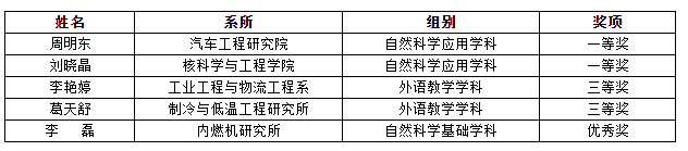 竞赛立足于“以赛促教,以赛促学”,鼓励青年教师重视教学,加强青年教师的师德师风建设。竞赛分为人文学科、社会科学、自然科学基础学科、自然科学应用学科和外语教学学科五个组别,内容包括“教学设计”、“课堂教学”和“教学反思”三方面,最终,评选出一等奖8名,二等奖12名,三等奖16名,优秀奖11名。