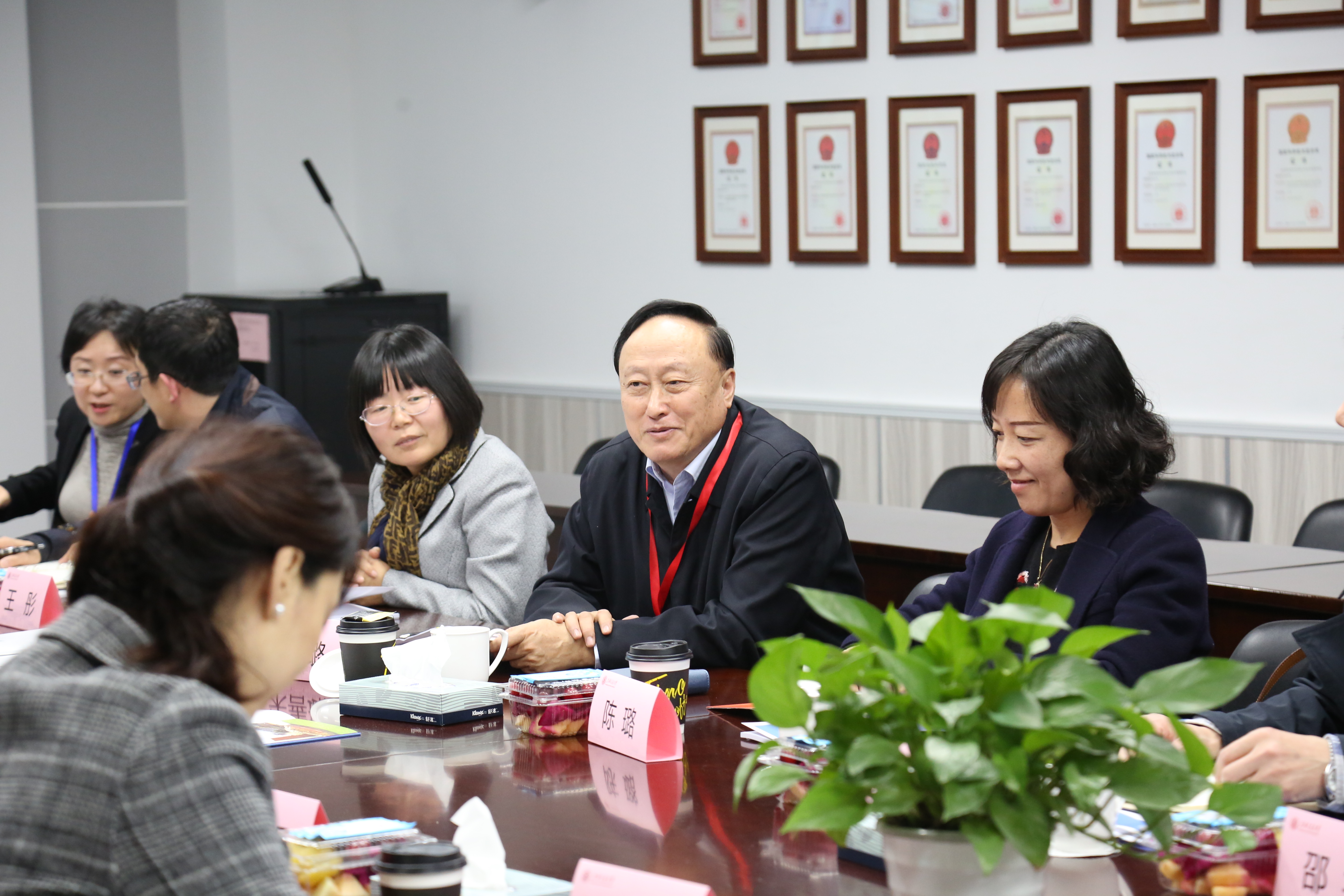 周定文就学院核专业发展状况、教学改革情况、产学合作培养模式、跨文化交流、师资队伍管理方面与学院领导、教师展开讨论。学院党委副书记顾希垚就学院学生就业引领与指导情况做简要汇报。周定文对学生专业志趣、家国情怀、价值引领等相关内容进行深入的了解,肯定了学院目前产学合作的培养模式,希望学院继续推进发展校企合作,培养出更多未来科技领域的领先人才。