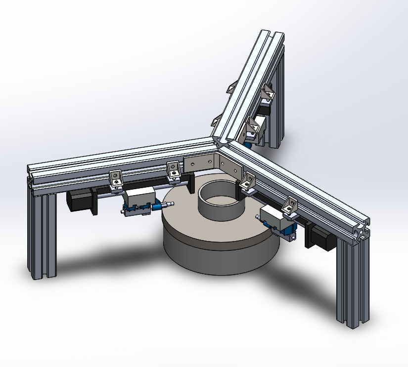 中美两国项目组成员通力合作,完成了对定心结构的专利及同类产品的检索分析,提出多个概念设计方案;经过和指导老师与企业工程师的沟通反馈,确定了详细的设计方向;双方确定设计尺寸与传感器位置后,建立初步3D模型;对方公司提供生产过程中运用的磁性旋转平台;随后在收到装配材料后又对模型设计作出修改,并使用3D打印机加工部分连接件,做出ALPHA原型机;最后使用Arduino接收距离传感器信号,运用定心算法控制步进电机运动步数,将轴承置于磁性圆盘中心。该设计通过多次测试迭代,已达到企业的精度与时间要求。
