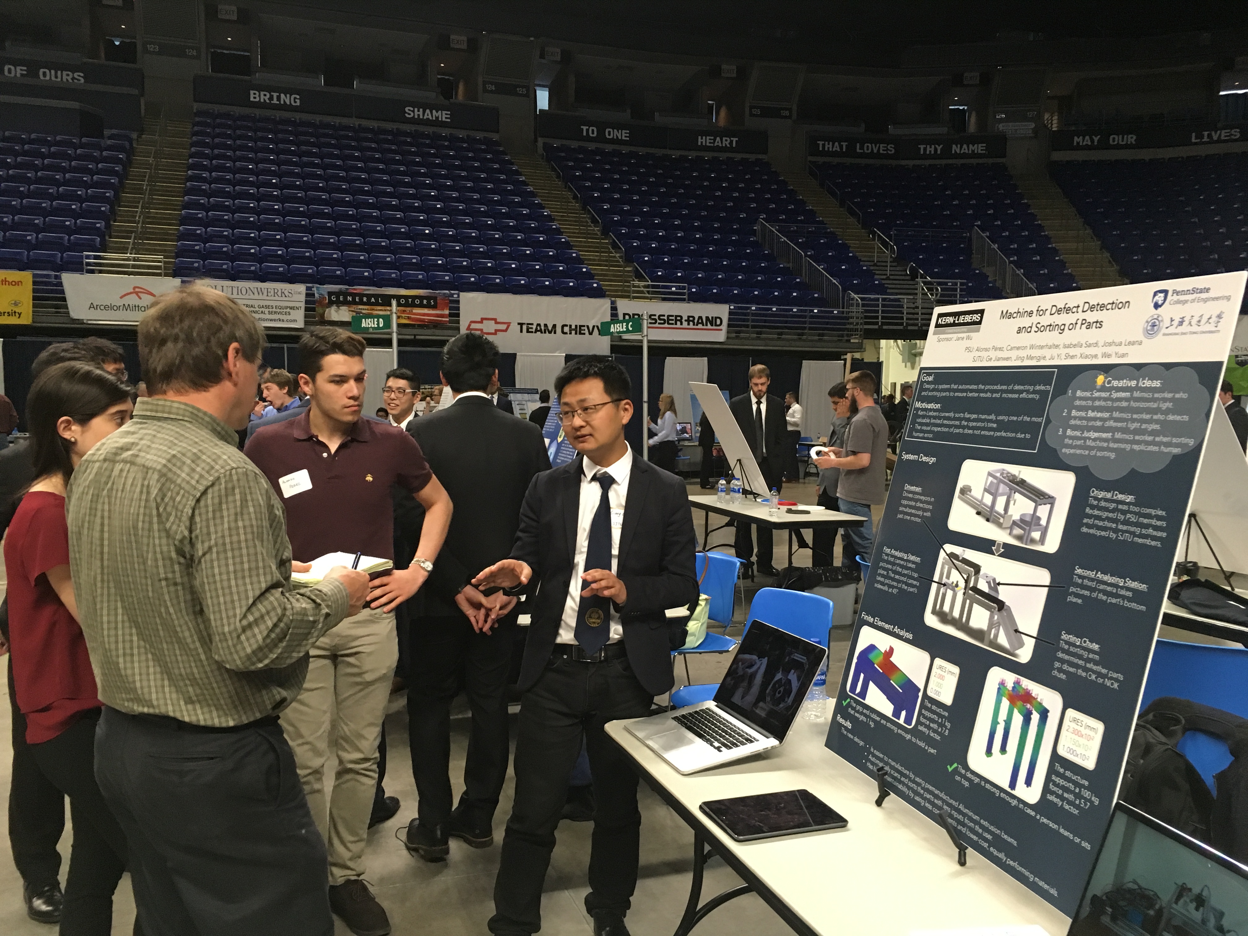宾州州立大学工程设计项目展旨在展示学生解决实际工程问题的能力,通过评选优秀设计项目鼓励表现突出的学生。本次春季项目展是宾州州立大学史上规模最大的一届共有139个项目参展,参赛者涵盖了多个工程学科的各个年级学生,共计9个项目获得“洛克希德•马丁杯”优秀设计奖。