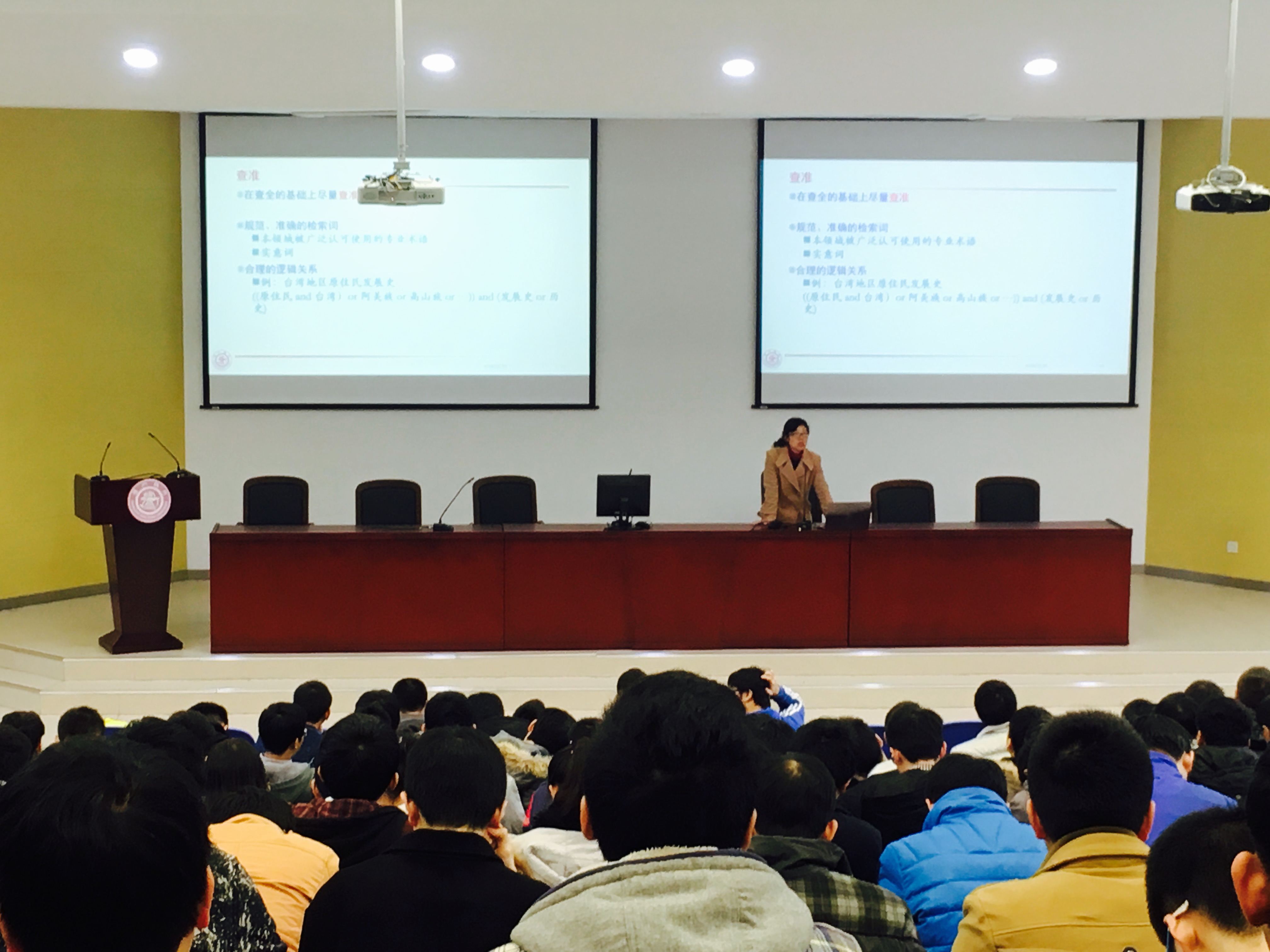 随后,马丽华老师从毕业设计工作需要哪些文献调研谈起。详细讲解了如何使用网络资源进行文献检索、如何使用数据库资源、如何合法合理的利用信息以及如何管理文献等渗透到毕业设计过程各个环节的问题。