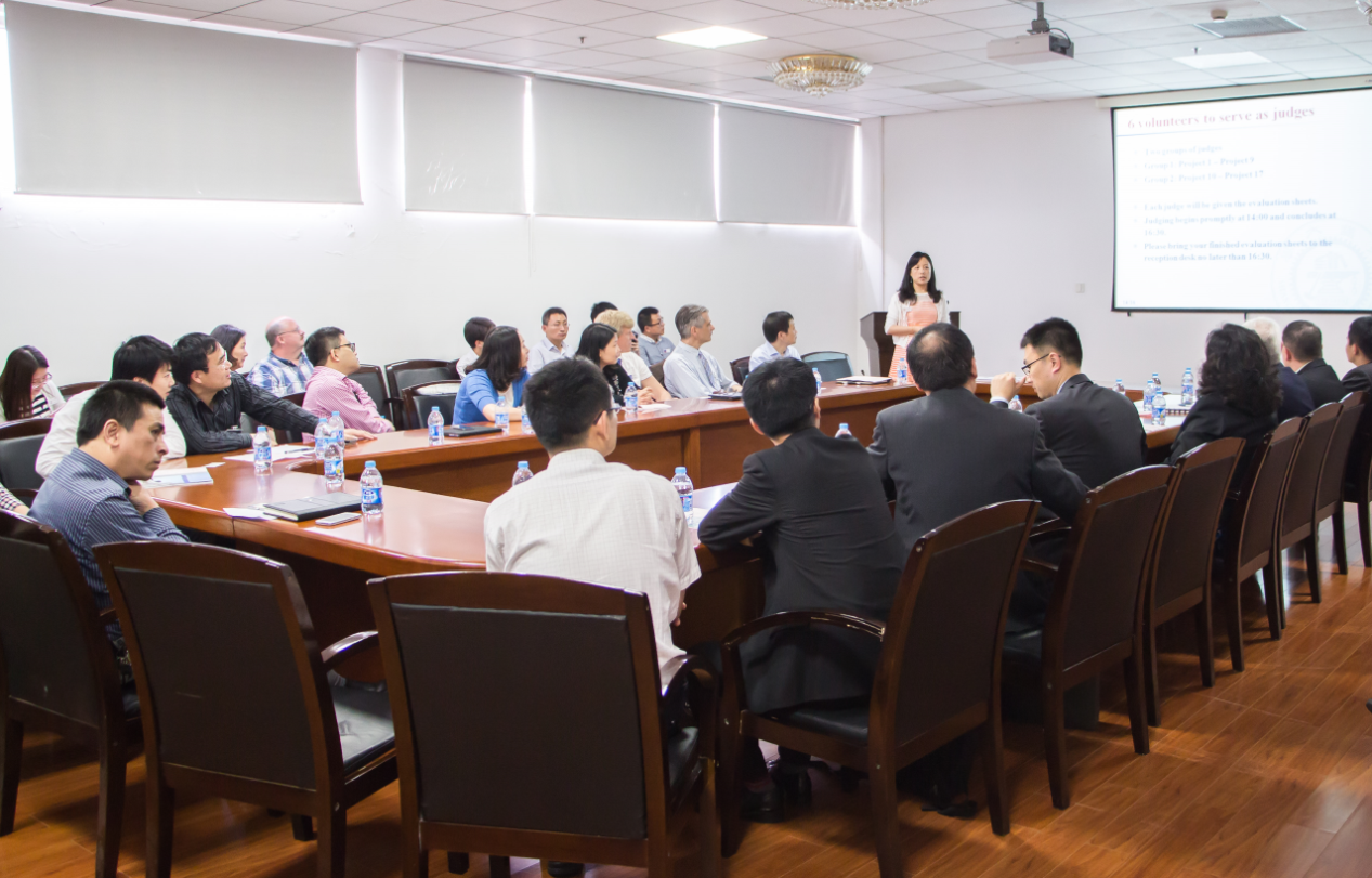 参展的17个国际项目小组的学生依次进行了汇报讲解,并通过展板和实物展台对其项目成果进行了展示,还在现场与企业嘉宾进行问答交流。