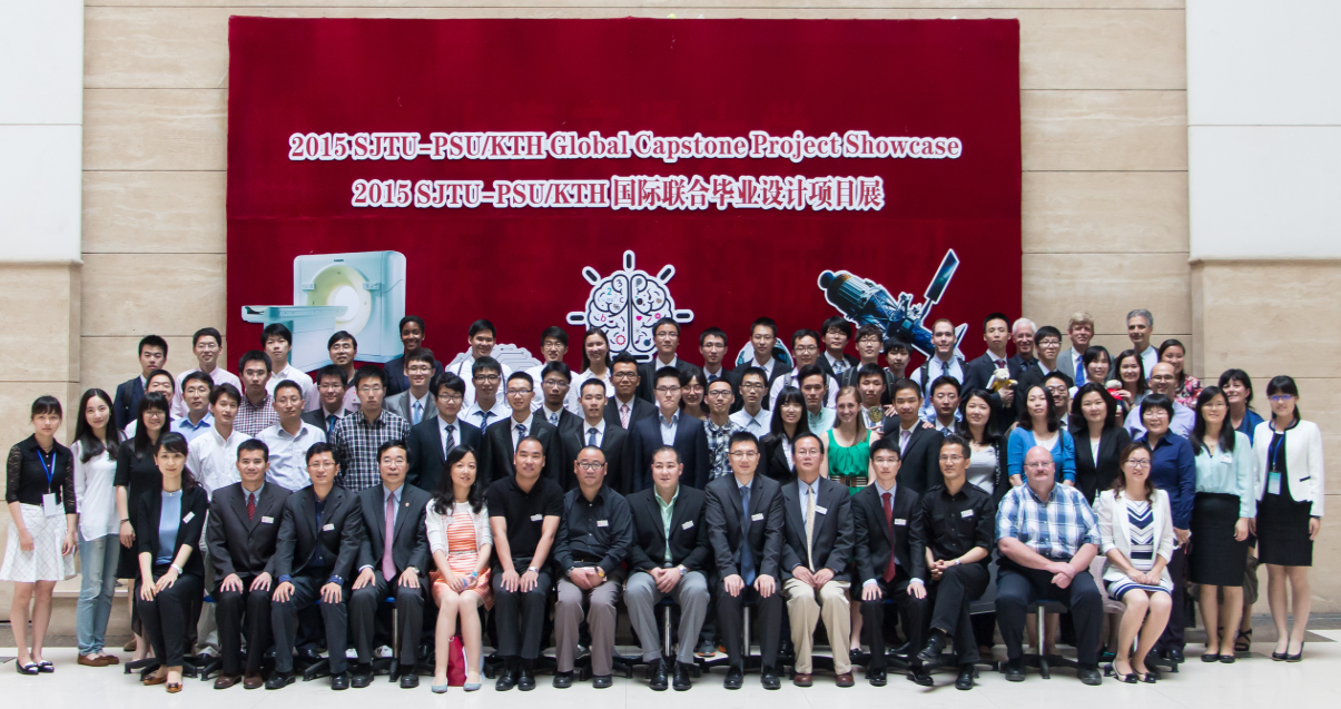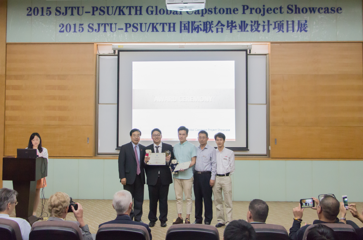 6月3日,2015SJTU-PSU/KTH国际联合毕业设计项目展示会在买球官方网站举行,美国宾夕法尼亚州立大学和买球官方网站的本科生展示了17项国际工程项目成果。买球官方网站副校长徐学敏,美国宾夕法尼亚州立大学、瑞典皇家理工学院教授代表,交大相关学院领导、指导教师,以及40余名企业代表参加活动。