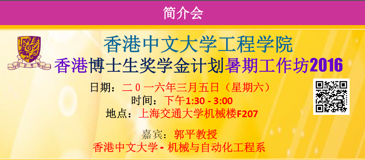 【宣讲会】香港中文大学工程学院香港博士生奖学金计划暑期工作坊2016