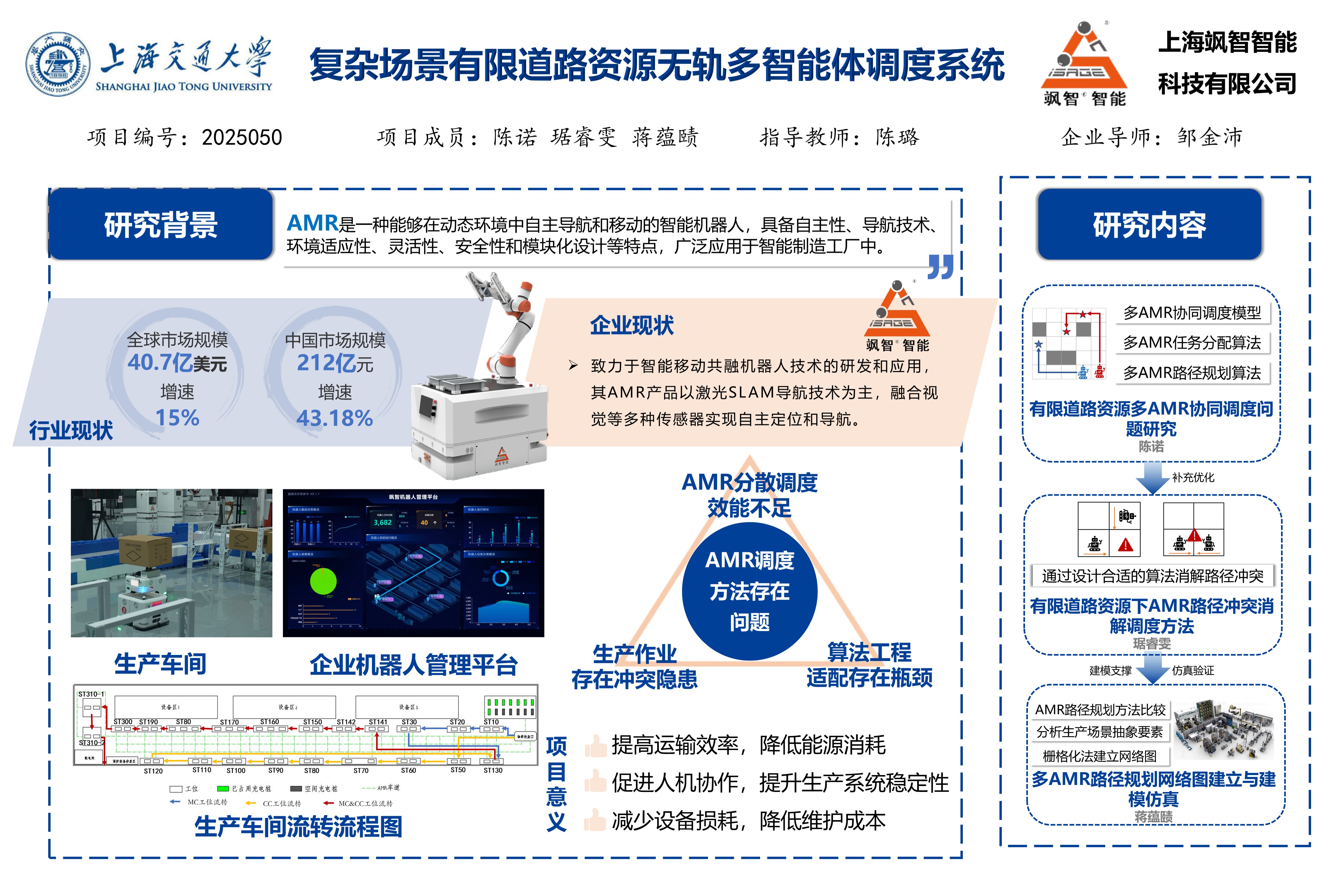 3. 通过仿真测试,评估算法有效性、适应性和鲁棒性,推动算法落地应用,为智慧工厂物流方案定制提供高效解决方案。