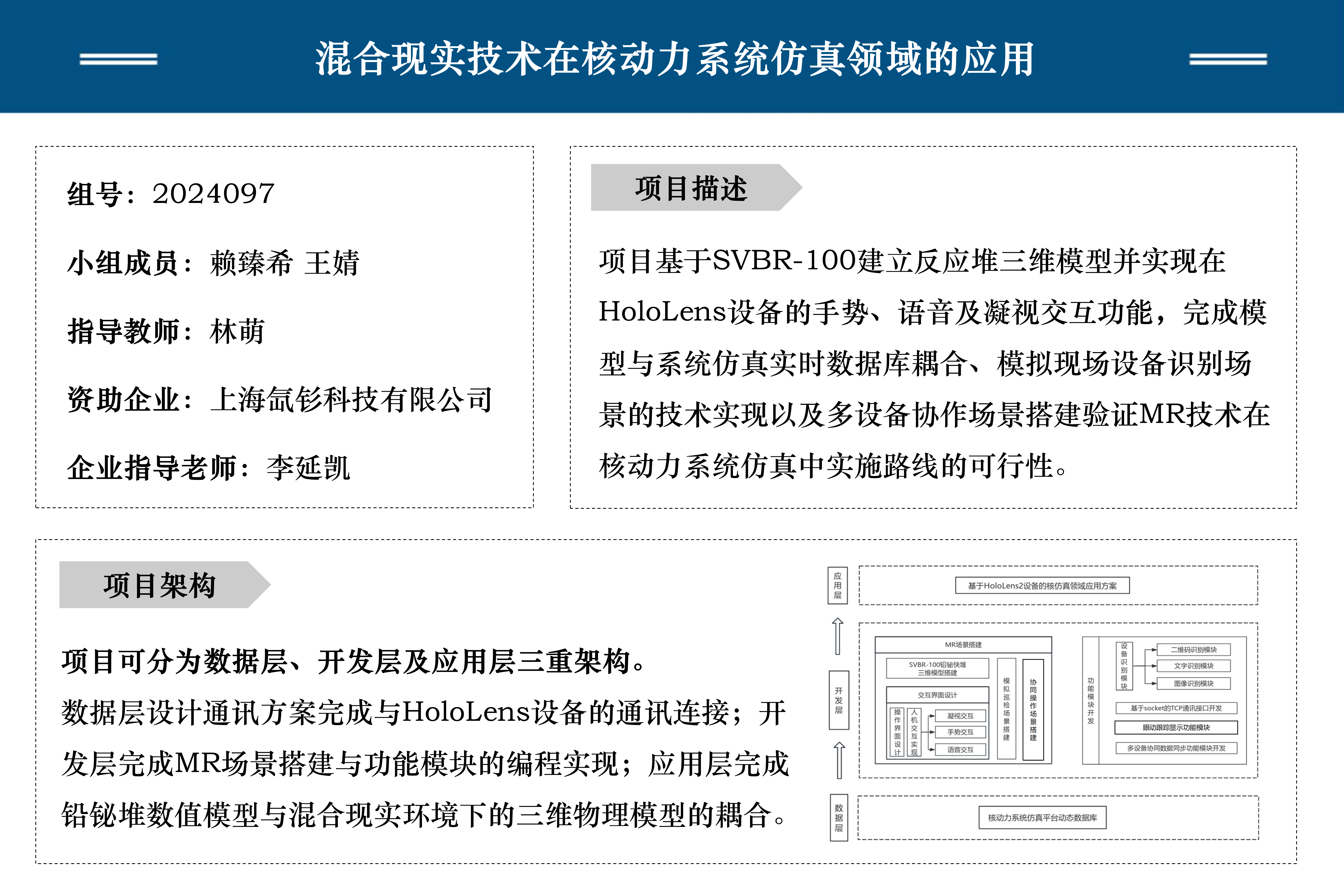 项目旨在设计一套MR技术在核仿真领域的验证性应用方案,利用具备强交互性且能充分融合虚拟环境与现实的MR技术解决核电设计及人员培训领域的痛点问题。预期通过反应堆三维模型建立与交互功能实现、核仿真平台数值模型与MR环境物理模型耦合关系构建、NURES与HoloLens通讯方案设计、模拟设备识别场景搭建及多设备协作功能实现验证MR技术在核仿真领域应用的可行性,为MR技术未来在反应堆数字协同设计与分析和人员培训领域的工程级应用打下基础。