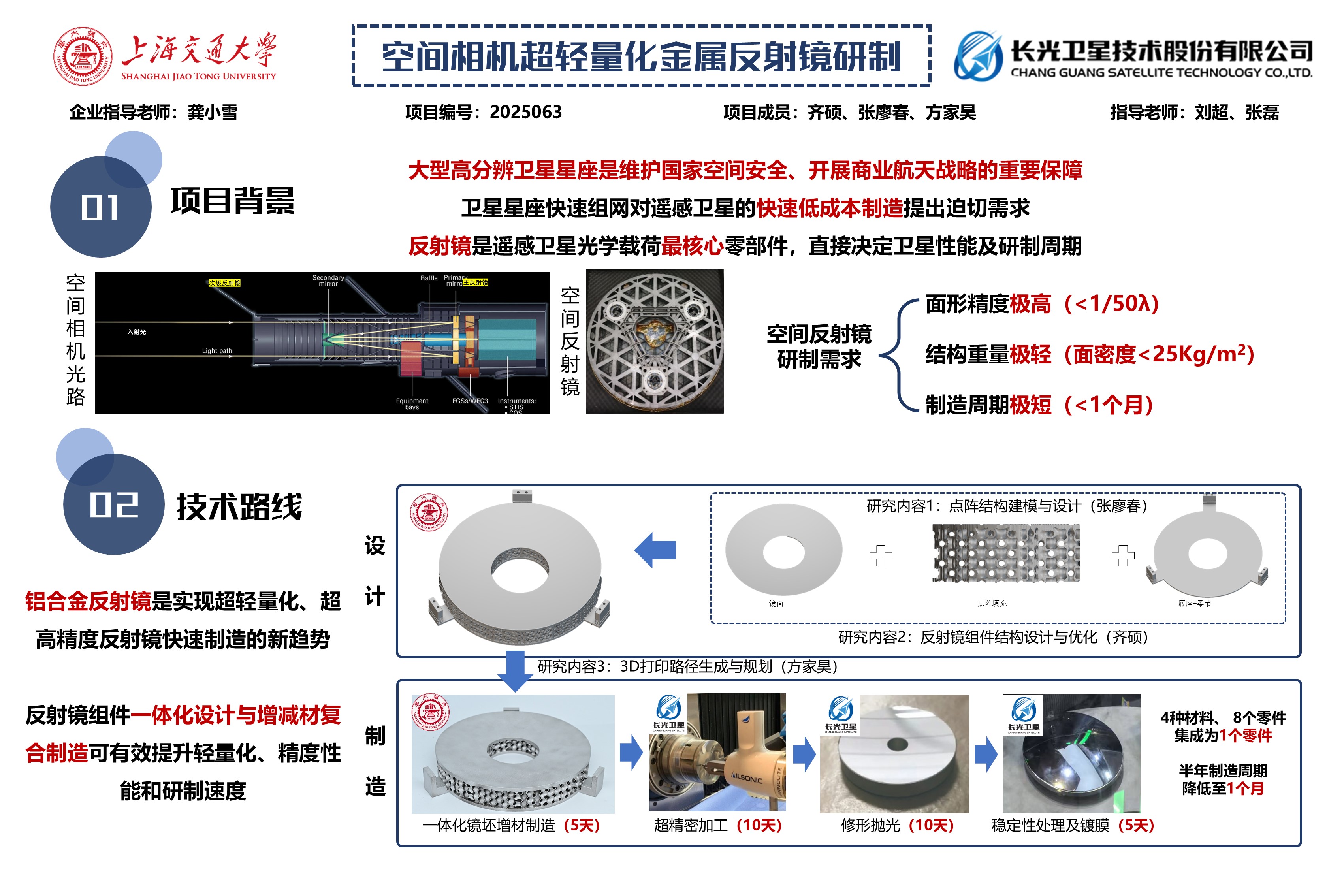 随着全球对地观测需求的激增,高分辨率遥感卫星星座的规模化部署成为各国航天领域竞争的新焦点。反射镜作为空间相机的核心光学组件,传统设计方案因坯料制备周期长、硬脆特性导致的加工困难,使得反射镜制备周期普遍超过半年,卫星星座建设面临着反射镜研制周期的制约。随着单点金刚石车等超精密加工技术的成熟,全铝反射镜加工面形精度已可实现1/50λ,这为反射镜在可见光相机应用提供了可能,有效解决反射镜制备难度大、周期长的问题,技术可行性高。