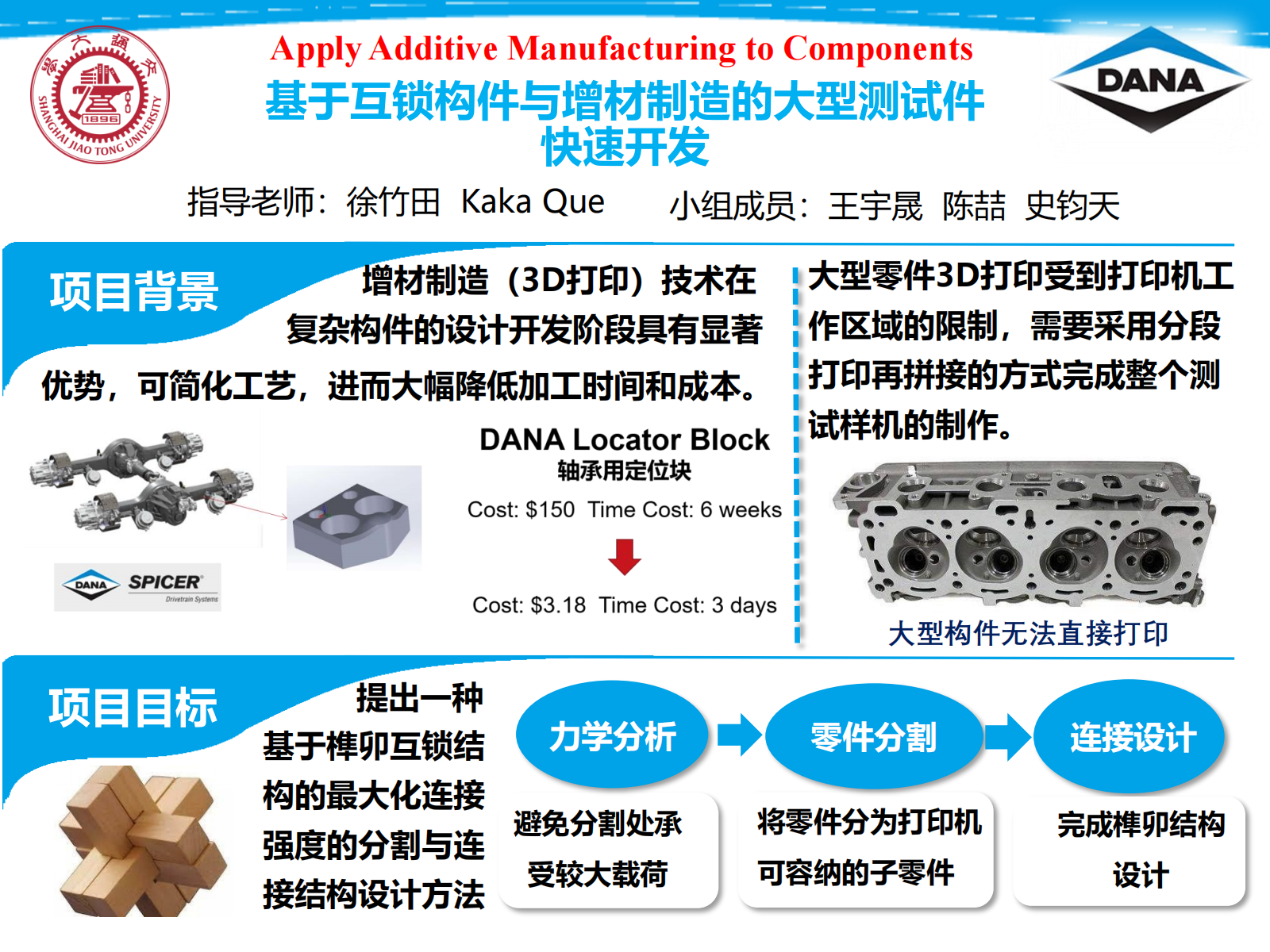 本项目旨在提出一种适用于大型零件的增材制造方案,包括零件分割与榫卯互锁连接的设计方法,使零件满足工况下的力学性能要求。