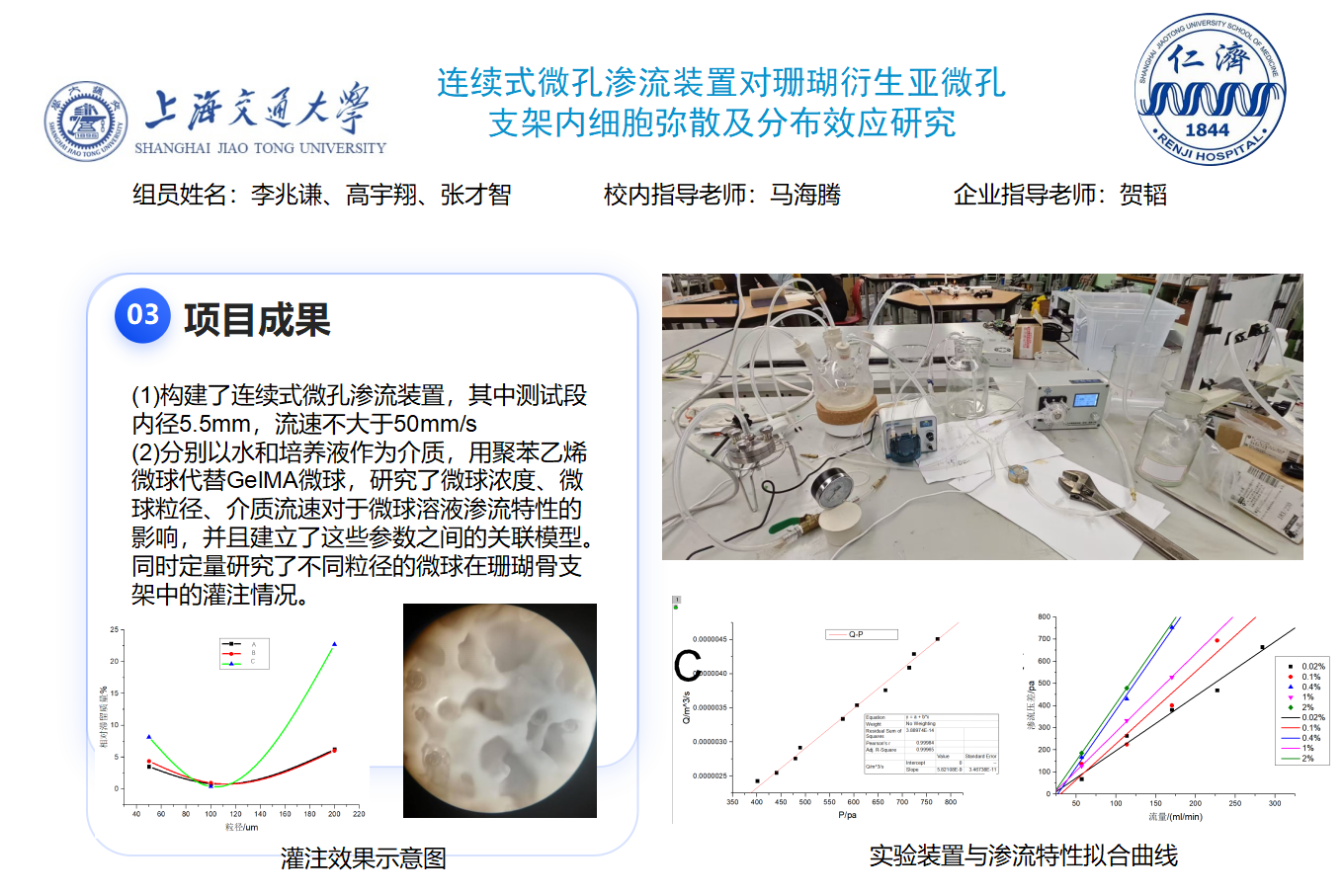 (2) 分别以水和培养液作为介质,探索不同流动参数(如微球粒径,微球浓度)对珊瑚支架灌注效果的影响;