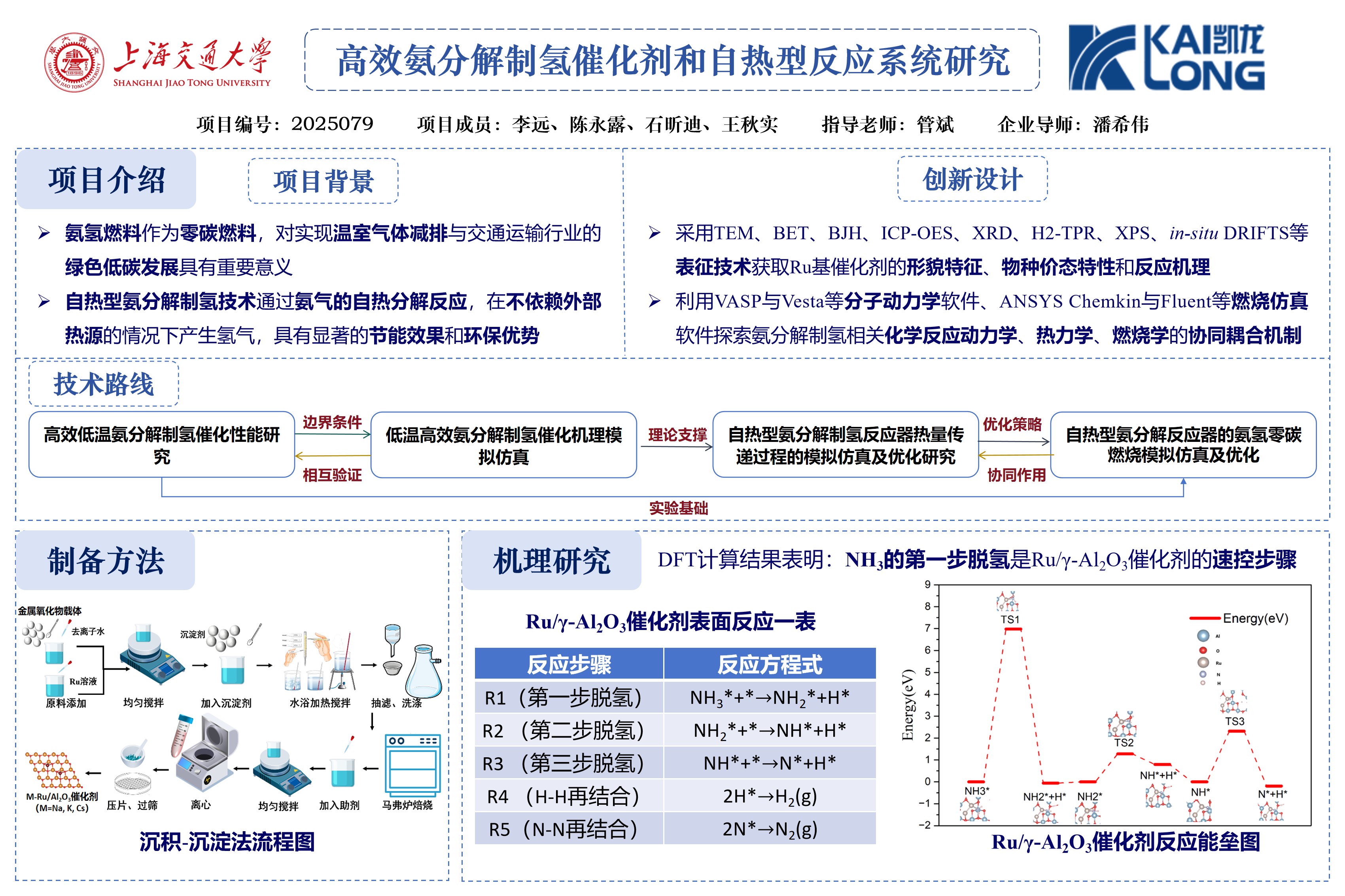 2. 对开发的Ru/Al2O3催化剂建立了分子模型,计算了中间步骤的反应势垒,得到NH3的第一步脱氢是Ru/Al2O3催化剂的速控步骤;
