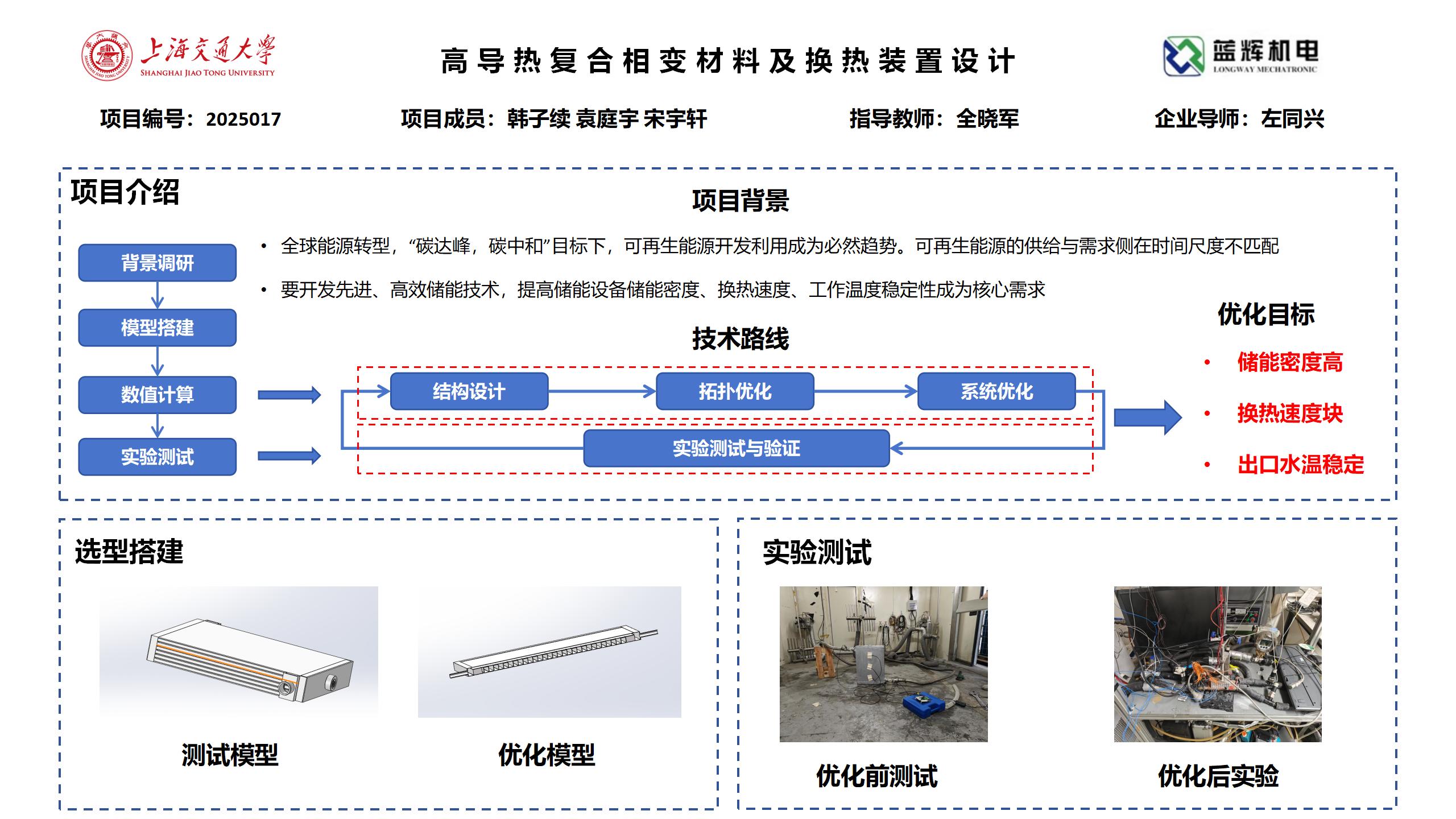 开发一款基于高导热复合相变材料的储能密度大、换热速度快、出口水温稳定的相变换热装置,主要目标包含以下几个方面: