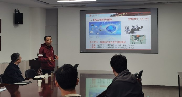 重大装备设计与控制工程研究所教工党支部书记郭为忠教授做“仰望星空,脚踏实地,创新突破”微党课主题讲座,介绍了机械工程专业的历史使命,指出研究所科教并重,在机构结构创新及其行为智能的研究方面做出了贡献,希望大家发挥主观能动性,坚定不移走自主创新道路,突破“卡脖子”难题,为制造强国建设贡献更多力量。