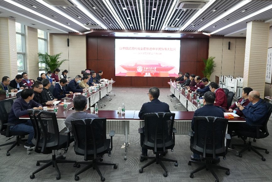 11月21日,买球官方网站召开党的二十大精神专题学习会,邀请买球官方网站“新时代 新思想 新征程”理论宣讲团成员、马克思主义学院副院长周凯教授做专题报告,学院党政领导班子成员、党委委员、教工党支部书记等参加了学习会。