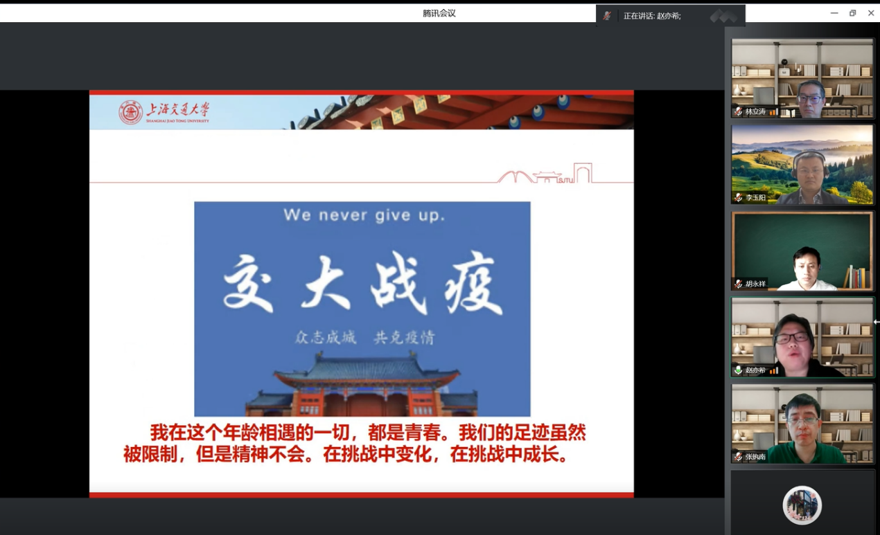 学院院长杜朝辉介绍了校内疫情防控情况,表示校内校外协同联动,学院各项工作稳步开展、扎实推进。他要求大家积极思考在线教学方式方法,关注教学效果,提高教学质量;紧密联系学生,关注学生科研、实验以及毕业离校等工作的进展;加强实验室安全管理,消除安全隐患,筑牢安全防线;做好师生关心关爱工作,充分发挥党支部战斗堡垒和党员先锋模范作用,积极参与志愿服务活动,以实际行动为疫情防控贡献力量。