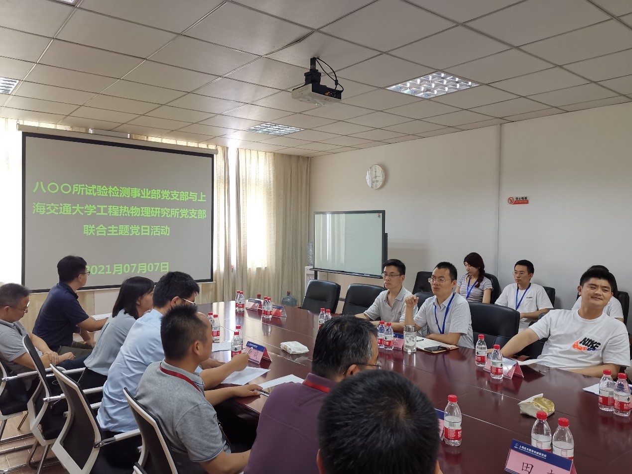 为庆祝中国共产党成立100周年,深入开展党史学习教育,增强党的凝聚力和战斗力,加强支部自身建设,7月7日,工程热物理研究所党支部与上海航天精密机械研究所(以下称“800所”)试验检测事业部党支部,联合开展“学党史 悟思想 办实事 开新局”主题党日活动,学习航天历史,感受航天精神,融合航天科研。