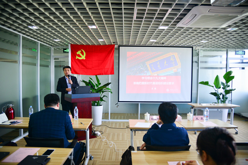 杜朝辉宣读了学院党委《关于成立中共买球官方网站买球官方网站临港师生工作党支部委员会的批复》,买球官方网站临港师生工作党支部正式成立,支部委员会由赵勇、杨肖、吴志军、胡延、陈坤五位同志组成。杜朝辉在讲话中指出,党的十九大报告内容丰富精彩,要求大家认真深入地学习和领会,自觉贯彻全面从严治党的新要求,增强责任和担当意识;新成立的临港师生工作党支部为师生学习和交流搭建了平台,要切实发挥出基层党组织的政治核心作用,引导研究生同学树立远大志向,培养浓厚的学术志趣,脚踏实地地做好科研工作。