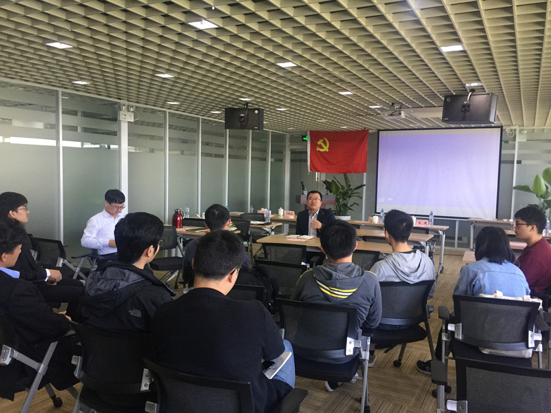 支部成立仪式后,顾希垚与智能制造研究院研究生同学互动交流。学生党支部书记参观了实验室,体验和感受了科研产业化的成果,增加了支部之间的交流。