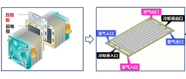 这种采用“两板三场”结构设计的双极板是国际首创,其性能指标达到国际先进水平。由国产双极板串联层叠组成的车用电堆,功率为115千瓦,处于国际“领跑”地位,实现了燃料电池汽车的全功率驱动。