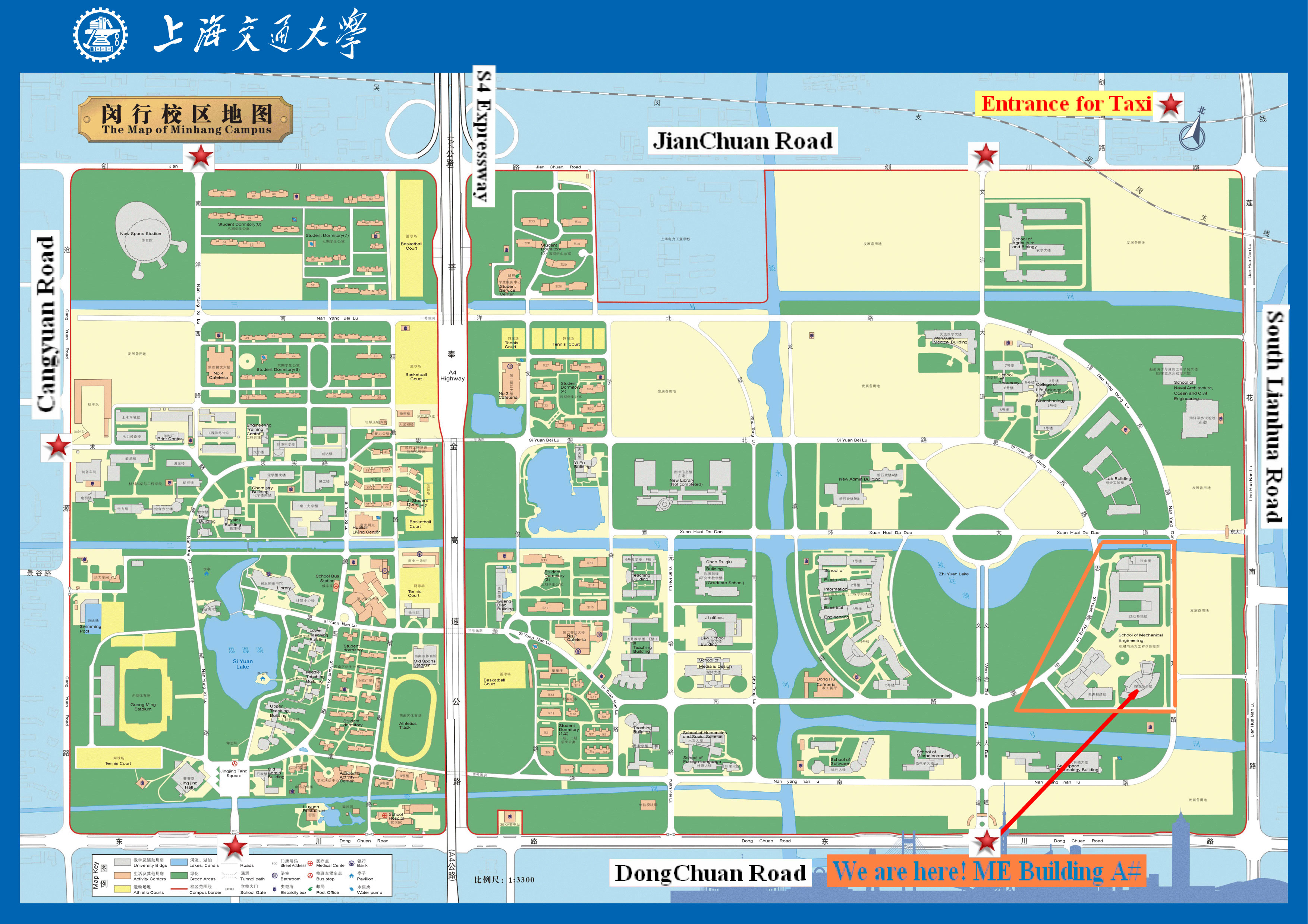 Then take a short taxi ride to the campus (Orange taxi). Cost approx. 12 RMB