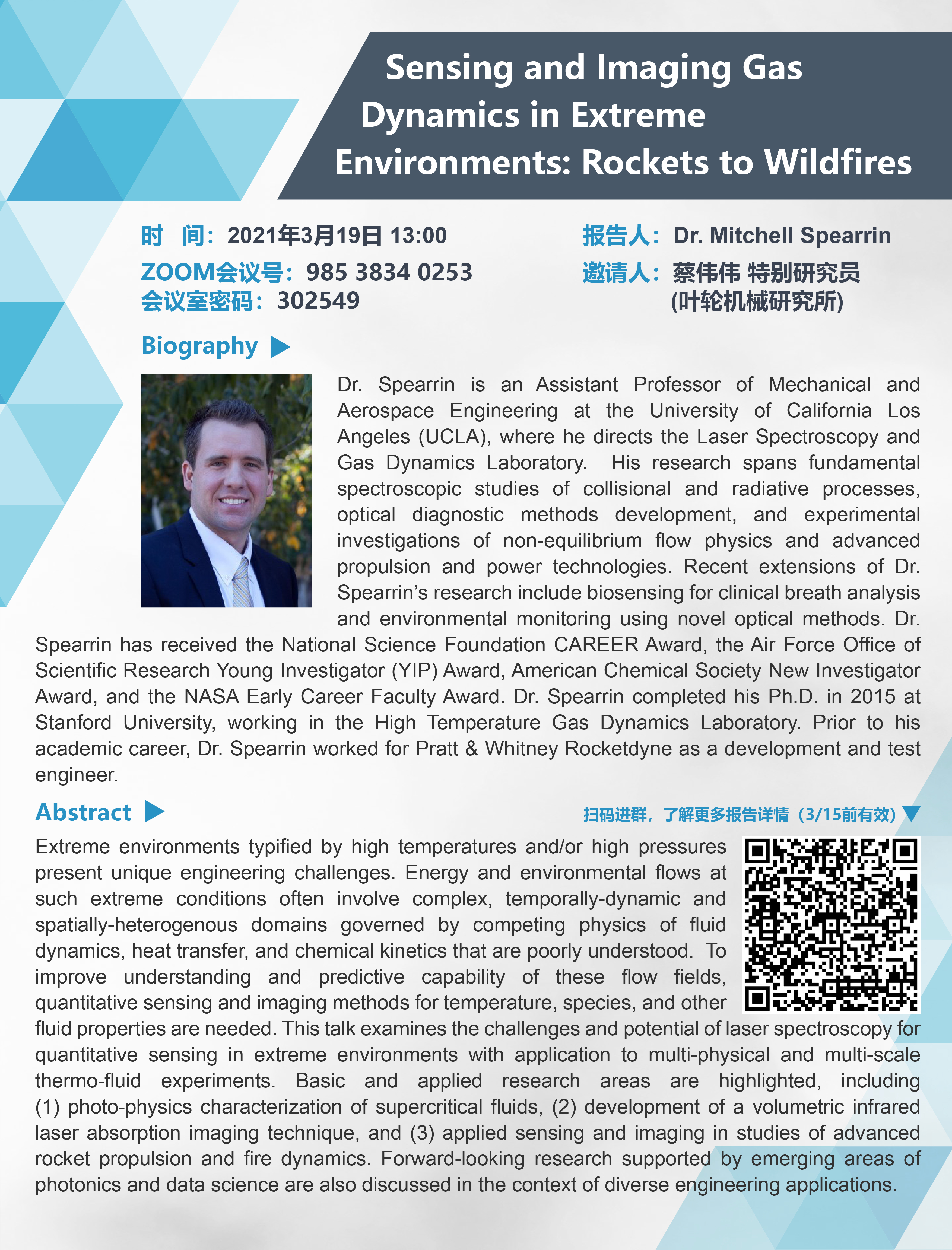 Dr. Spearrin is an Assistant Professor of Mechanical and Aerospace Engineering at the University of California Los Angeles (UCLA), where he dir