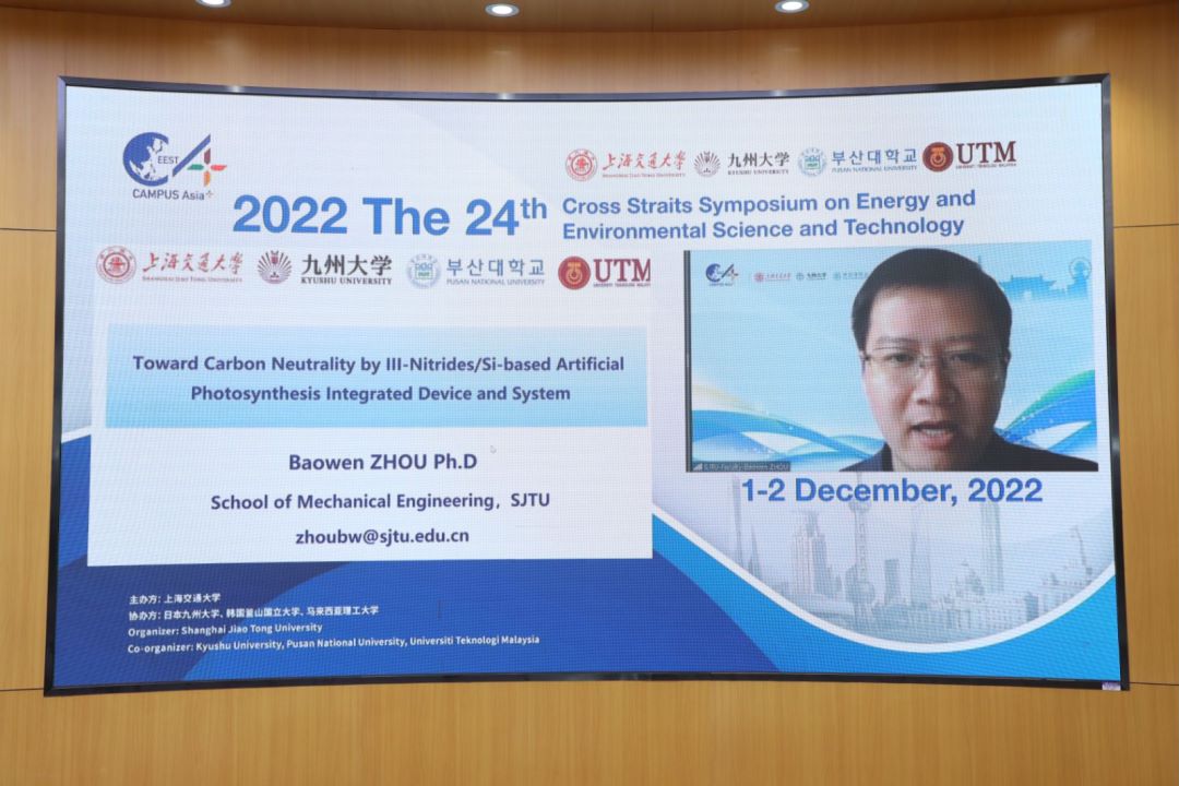 Professor CHENG Jinhua, Vice Dean of the Graduate School of Shanghai Jiao Tong University delivered the welcome speech. Professor JIANG Zhi, the Program Director of the CAMPUS Asia at School of Mechanical Engineering was invited to be present. Professor ZHOU Baowen gave a keynote speech on the topic of “Toward Carbon Neutrality by III-Nitrides/Si-based Artificial Photosynthesis Integrated Device and System”.
