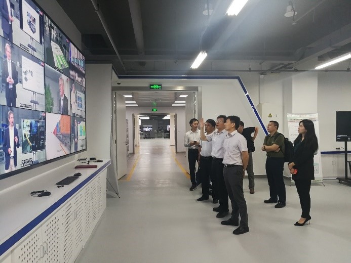 会前,杨孟飞一行先后参观了上海交大弗朗霍夫工业4.0示范线、智能制造研究院智能步行机器人所。