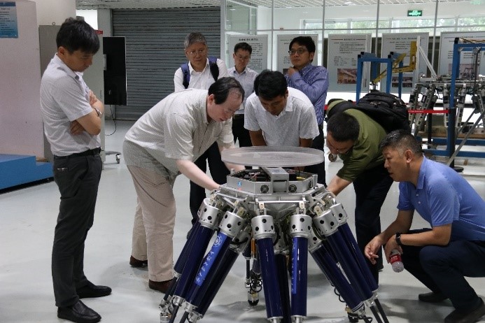 高峰作题为“步行机器人行为智能设计与应用展望”的汇报,与杨孟飞等深入交流了对机器人在空间探测的看法。