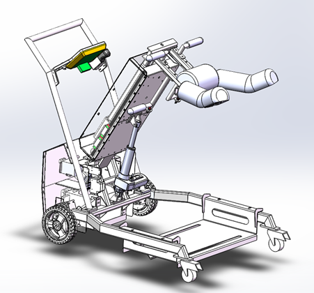 针对脑卒中病人的实际需求,项目设计了一款助行器,应用场景为康复医院,具有以下三大功能:1、转移病人:75%以上的幸存的脑卒中病人都具有不同程度的运动功能障碍,难以顺利完成不同地点之间的转移,助行器可以帮助病人从病床或轮椅转移至马桶或洗澡间等场地,减少医护人员的体力支出。2、搀扶病人站立:由于脑卒中病人运动能力下降,难以完成站立的动作,助行器可以搀扶病人站立。3、辅助行走训练:对于脑卒中患者而言,行走康复训练可以促进病人运动功能的恢复,助行器可以配合博智林机器人公司的外骨骼机器人进行行走康复训练,促进脑卒中病人的康复,也能保障训练过程中的安全问题。另外,助行器还可以为外骨骼机器人供电,使外骨骼机器人不需要自带电池,减轻了病人使用外骨骼时的负载。