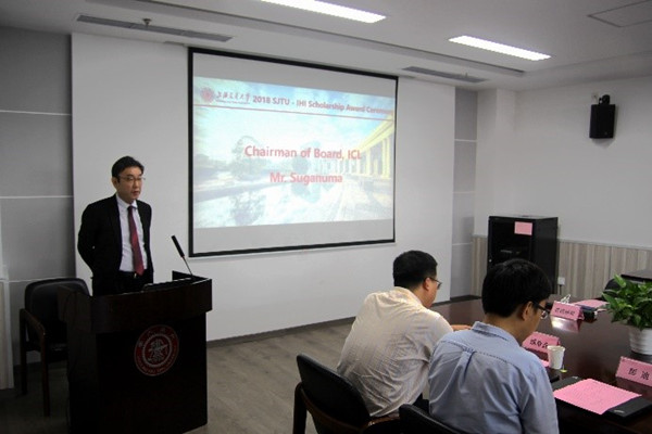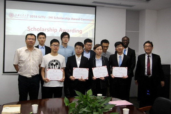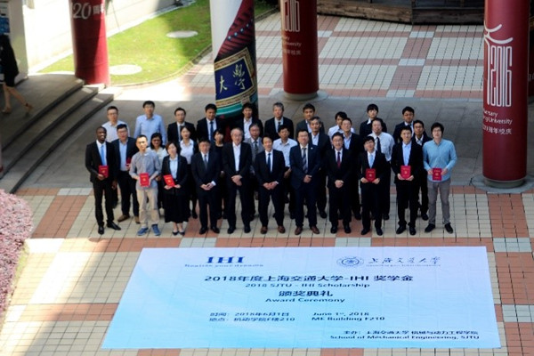 6月1日,2018年度买球官方网站-IHI公司奖学金颁奖典礼举行。IHI公司中国分部董事会主席菅沼祯郎、产品研发部门总经理笠俊司、合作研究与发展部门副总经理久保田伸彦,买球官方网站党委副书记顾希垚等出席了活动。