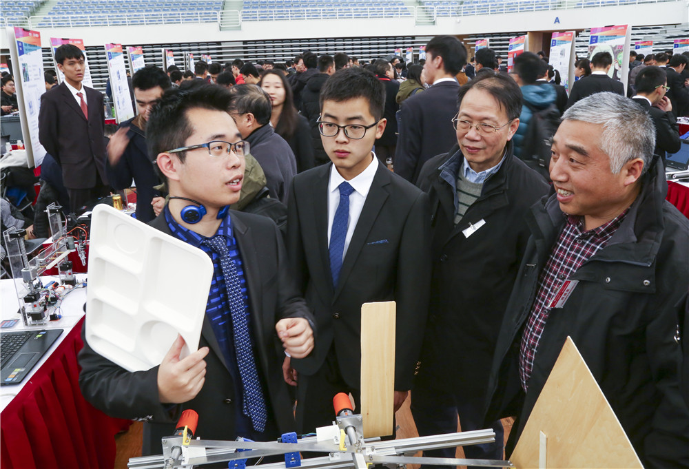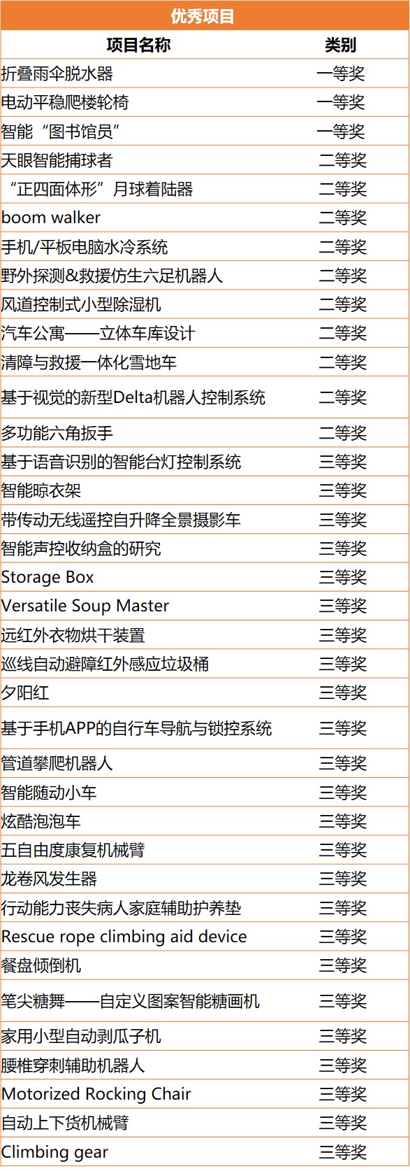本届项目展共展出了600余名本科生完成的《工程学导论》、《设计与制造II》两门课程的130个秋季学期专业课程设计项目,选题设计均来自于指导教师研究课题以及学生自选发明等。学生通过PPT、展板和实物模型展示等形式向评委嘉宾们介绍了本组的设计项目,企业嘉宾、校友、教师们还提供了很多指导建议。最终,活动评出了3个优秀项目一等奖,10个优秀项目二等奖,24个优秀项目三等奖,15个最佳创意奖和10个最受学生欢迎项目。